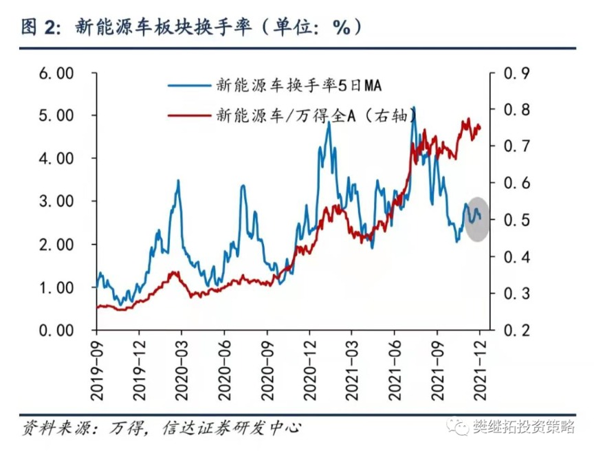 从各板块的换手率来看,也不是很极端。今年最强的新能源车板块,换手率从8月以来持续下降,当下的水平并不高。最近1个月表现最强的食品饮料,板块换手率略有回升,但整体也处在较低水平。
