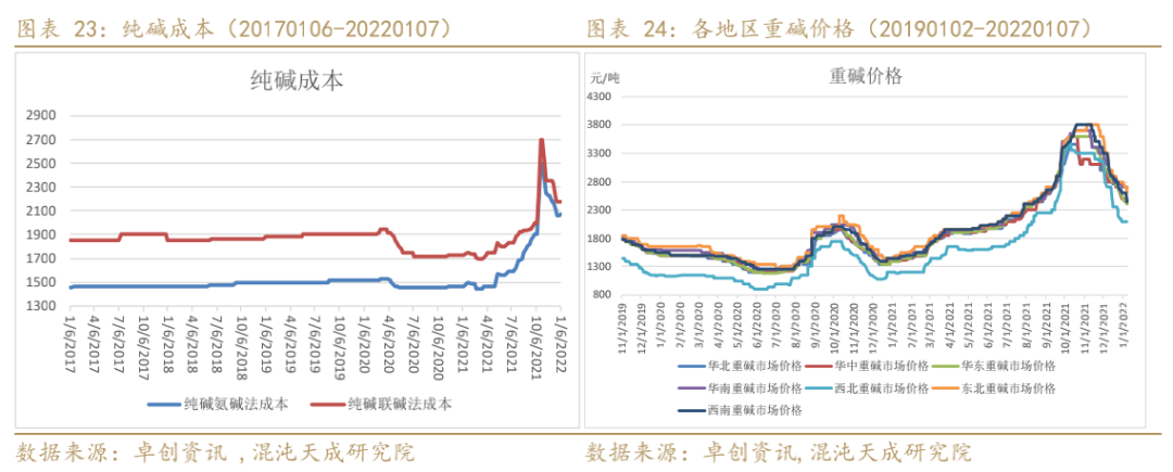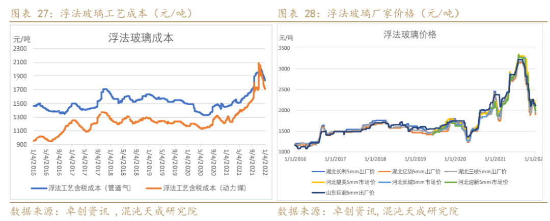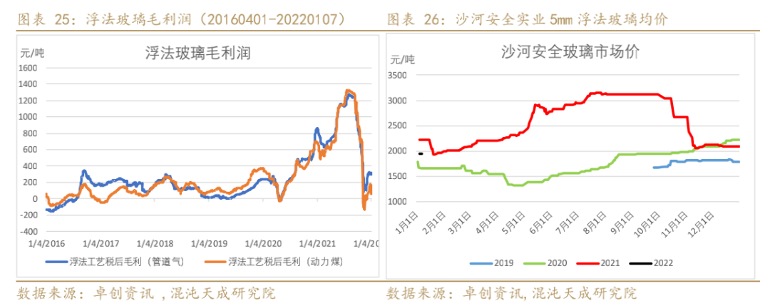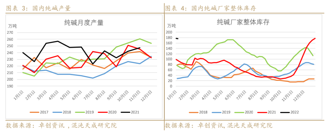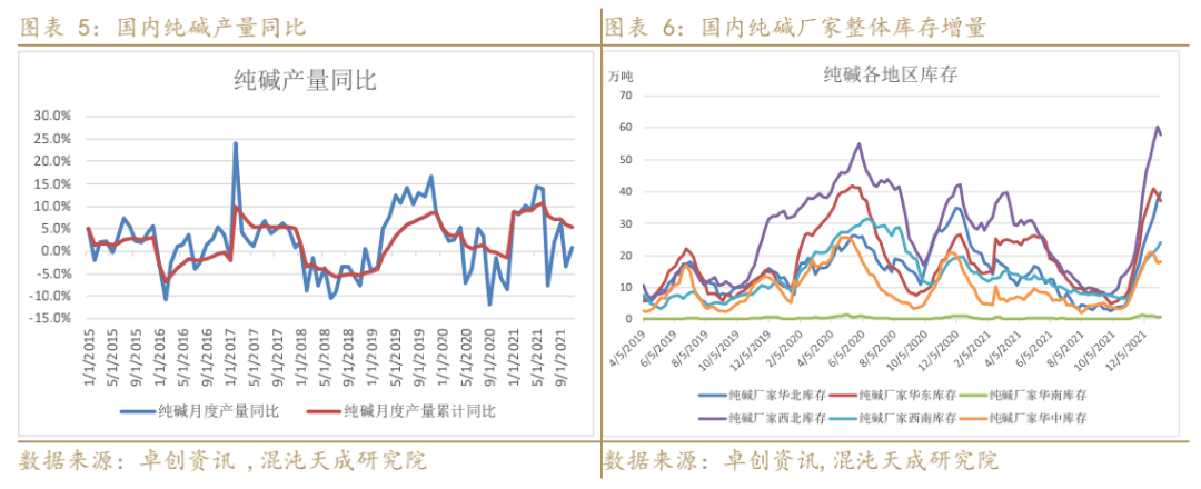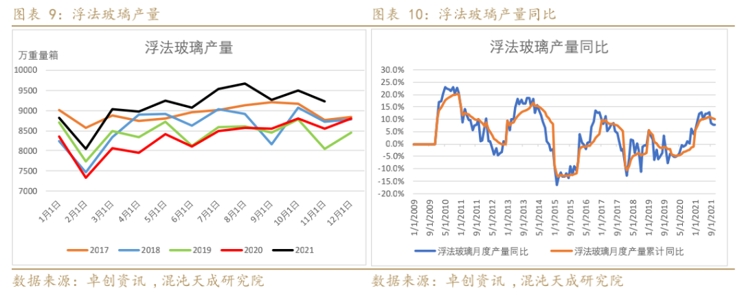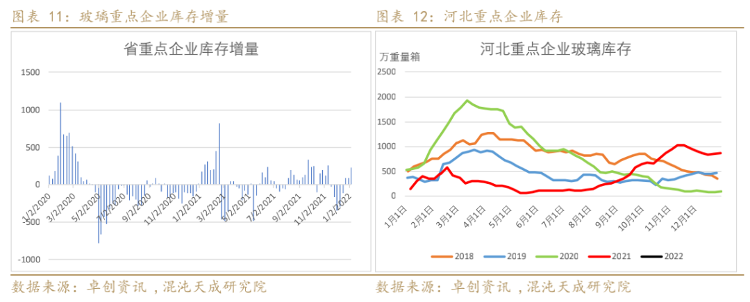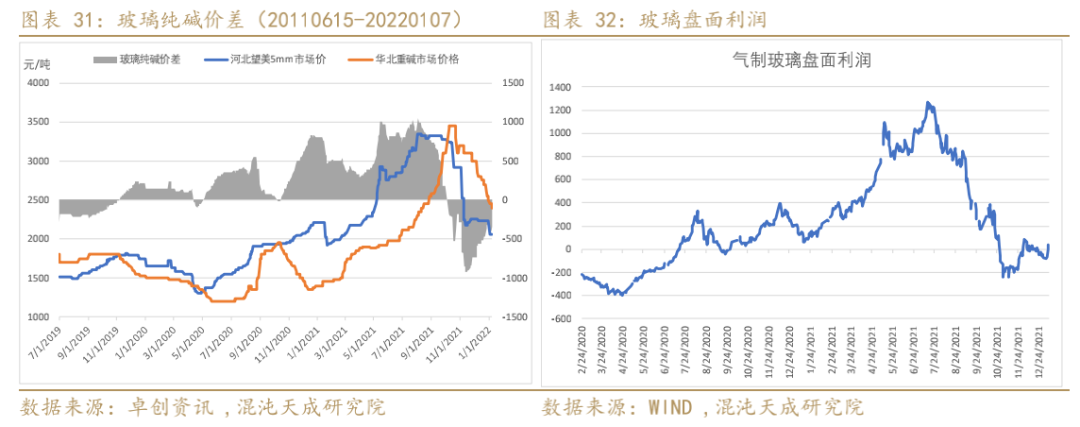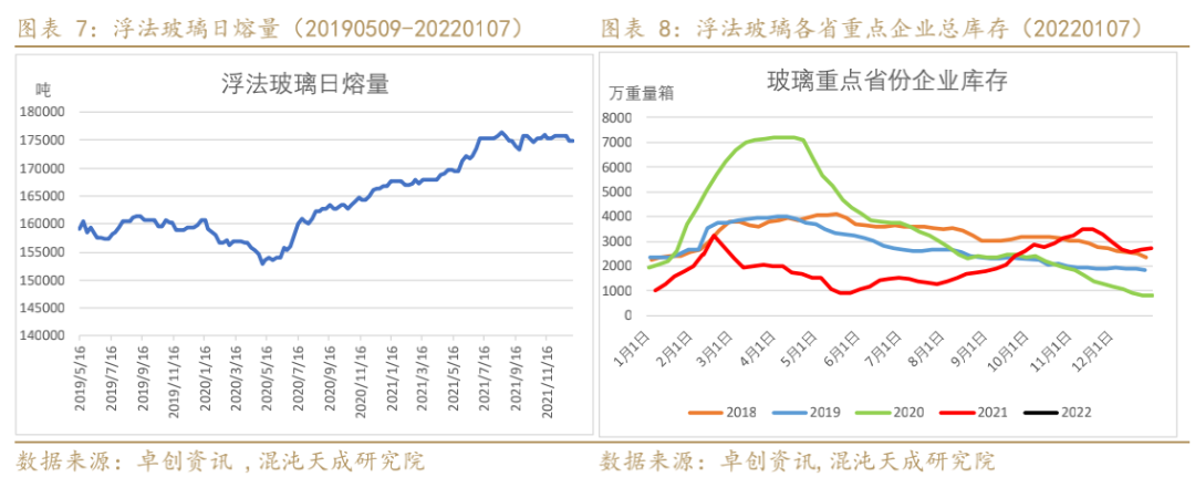 一、供需状况 1月上旬,本周纯碱厂家开工负荷81.1%。本周纯碱厂家整体开工负荷有所提升,整体库存水平高位,市场货源供应充足。终端用户刚需采购为主,大面积节前备货尚未启动,据悉个别地区汽运较为紧张。重碱下游浮法玻璃、光伏玻璃市场弱势运行,对重碱压价情绪不减,重碱市场价格成交重心进一步下移,轻碱下游需求清淡,局部地区用户逢低适当补货,部分纯碱厂家出货较前期有所好转。 本周浮法玻璃生产线无变化,玻璃日熔量较上周持平。本周国内浮法玻璃市场弱势下行,交投转弱明显。周内受节假日及刚需转弱影响,多数区域厂家出货均有不同幅度放缓,华北、华中区域价格下调较明显,华东、华南价格亦有不同幅度走低。后期市场看,市场需求将进入快速下滑阶段,部分加工厂订单维持生产至 10-15 日,浮法厂库存偏高下,市场下行风险较大,预计后期将陆续有春节政策推出。 1、纯碱供给 本周国内纯碱厂家加权平均开工负荷在81.1%,较上周提升6.2个百分点。后市产能检修不多,预期纯碱厂家开工负荷较为稳定。本周纯碱产量53.36吨,较上周增加2.16万吨左右。纯碱需求相对供给更具稳定性,短期节奏关注供给,持续关注能耗双控政策。 纯碱2021年11月份产量247万吨,1-11月份累计同比增加5.4%,近期厂家检修恢复,开工负荷有所提升。每个月纯碱产量和卓创统计的周度开工负荷计算的产量不符,远高于预期,可能有超产情况。 本周中国纯碱厂家整体库存177万吨左右(含部分厂家外库及港口库存),环比减少0.36%,同比增加91.7%。其中重碱库存97-98万吨(含部分厂家港口及外库库存),库存集中度较高,库存主要集中在西北、华东、华北地区。近期纯碱价格持续下滑,随着春节的日益临近,部分下游用户节前适度备货,部分纯碱厂家出货情况有所好转。 2、浮法玻璃供给 本周全国浮法玻璃生成线共计307条,在产266条,浮法玻璃日熔量为17.4万吨/天,与上周持平。 本周浮法玻璃各省重点企业库存3766万重量箱,较上周增加7.08%,北方环保压力下玻璃产能向南方地区转移,北方供需格局不断改善,价格水平线抬升,提升了整体玻璃价格。春节临近,需求逐步减弱,下游库存较低,有一定补库需求。 3、光伏玻璃 在全球碳中和的大趋势下,光伏发电或将成为未来最重要的能源来源,光伏需求快速提升,光伏玻璃的需求也随之大增,并将会有一个长期增长的趋势。2020年四季度光伏抢装明显,造成光伏玻璃短缺,价格飙涨,随后工信部发文放开光伏玻璃产能限制,全力支持光伏行业发展,我国光伏玻璃产能占全球90%以上,肩负全球光伏行业发展重任。 2020年四季度光伏玻璃产能放开之后,各路资本抓住机会,纷纷推出光伏玻璃产能投建计划,据不完全统计,如果计划全部投产,光伏玻璃产能将增加2-3倍,将极大提升上游纯碱的用量,大部分产能计划在2021年下半年之后投产。 各地能耗双控,光伏上游产能也受到影响,硅料硅片价格继续创新高,组件价格上涨至1.9元/瓦以上,终端对高价有所抵触。2022年硅料产能逐步释放,预期光伏成本下降,全球装机将较大幅度增长。 4、下游房地产市场 平板玻璃主要需要集中在房地产竣工端,房地产开发过程:开工->封顶->竣工->交付,一般开工到竣工需要2-3年时间,我们对比房地产开工和竣工同比趋势,开工基本领先竣工三年时间。2017-2018年开工同比增长较多,预期2021年待竣工量较大,处于竣工周期内。近期房地产融资政策收紧,房企资金压力较大,需要关注房企销售回款情况。 二、企业利润和价差 1、纯碱玻璃利润 当前玻璃大幅回落,毛利润较低,后市产能或有冷修。纯碱价格回落,利润空间仍较好,预期2022年纯碱需求仍较好,利润仍有上升空间。 2、纯碱玻璃基差 责任编辑:七禾编辑 |