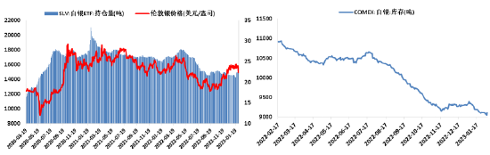 驱动分析二:白银工业和投资需求未有显著提升 白银工业需求在欧美经济衰退和中国经济复苏均无法证伪的情况下对银价的影响较难体现,投资需求方面,前期白银反弹行情中ETF的持仓止跌后目前仍未有显著回升,散户投资者和长期资金回流的兴趣有限,居民可支配收入和存款减少或压抑了金融投资需求,此外来自印度等地区的实物投资需求有所减少,白银库存回落的趋势出现缓和。