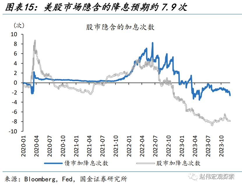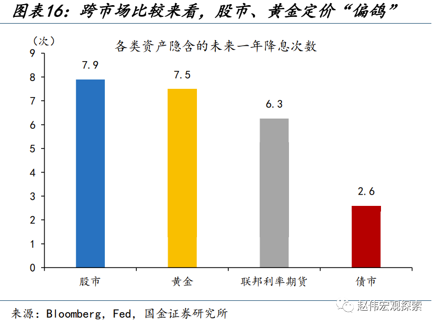 但一方面,传统框架中的“实际利率”通常以TIPS为代理变量;但黄金交易中隐含的 “实际利率”,或较TIPS更“鸽”,透支了一定的“降息预期”,导致了“老因子”的失灵。在传统框架中,为了跟踪的便利,通常以TIPS作为“实际利率”的表征;但黄金交易并不严格遵循TIPS的定价,TIPS成交量仅占美债总成交量的3.4%、较低流动性也使其更可能出现偏误。通过计算标普500、1年期/10年期美债、COMEX黄金、联邦利率期货的隐含“降息预期”,可以看出,当下标普500、黄金分别隐含了未来一年内7.9次及7.5次的降息预期,或较美债、联邦利率期货更“鸽”,在一定程度上透支了“降息预期”。