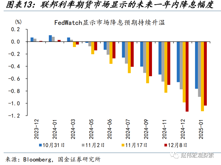 三问:新高之后,金价将“何去何从”?短期或向中枢回归,把握“蓄力”上行机遇 短期来看,当下金价隐含的“降息预期”或已过度透支,或存短期调整的可能。前期,美债利率持续下行是金价的重要支撑、且金价隐含的降息预期或较之更高。然而,低位库存叠加仍然偏低的有效利率,美国地产的韧性或成经济的短期支撑;美国11月失业率3.7%、薪资环比0.4%,薪资的粘性或拖累通胀的回落速度,当下市场对于明年一季度开始降息的预期或有“透支”。此外,财政支出压力下、美债仍有供给冲击的可能;叠加期限利差的约束,短期美债仍有震荡上行的风险,金价或相对承压。