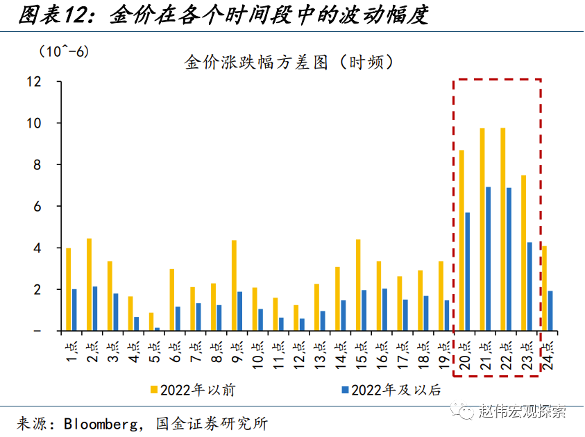 二问:“新变量”冲击还是“老因子”失灵?降息预期或有“透支”、投资需求较为“滞后” 实际上,实际利率的框架并未完全失灵,金价仍与实际利率具有较高的负相关性。一方面,历史回溯来看,黄金价格月度环比涨跌幅与10年期美债实际利率月度环比变动幅度、两者的负相关关系长期较为稳定,仅在2022年8月以来出现了小幅变动,但仍显著负相关。另一方面,统计金价在每日交易中各时段的价格波动幅度,可以看出,金价变动多在北京时间20时-23时出现,这正是美国经济金融数据集中公布的时段。