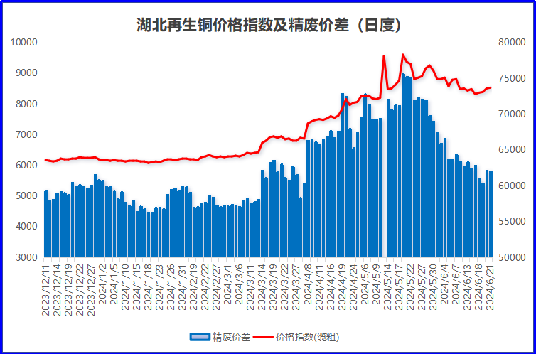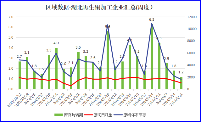 报告品种:铁矿石 2024年6月21日消息,据富宝有色铜研究团队调研统计,当周湖北地区再生铜杆加工企业(以下简称加工企业)现状。 开工率方面,当周湖北再生铜杆加工企业开工率39.57%,较上周环比下跌8.84个百分点;湖北再生铜制杆总产量约0.71万吨,环比减少2590吨。 湖北本周铜杆开工率延续下滑态势,主要原因为加工利润大幅度缩减以及市场废料紧缺导致。铜价延续弱势,T1/T3杆差维持低位打击低氧铜杆售卖,此外受市场端废铜供应紧张影响,精废价差收缩打击加工利润,叠加采购废铜困难,进一步抑制企业开工热情,料近期再生铜杆加工开工率或延续弱势疲软。 周度库存及日耗方面,湖北加工企业废铜原料库存平均周转期1.2天,较上周环比减少0.6天。样本库存量1630吨,较上周减少570吨;周内湖北加工企业(平炉)废铜日耗量约1000吨/天,环比减少370吨/天。 本周湖北企业废铜库存延续下降,整体库存周转期仅可维持企业刚需生产,受此前铜价高位贸易端库存大量抛出,价格回落后市场端废铜流通紧张,此外受企业利润减少,工厂难以抬价满足废铜贸易商心理价位,国内废料供应十分紧张。此外宁波进口废料近期受环保督察影响,退运率大幅提高,也对进口废料带来短期供给压力,料下周废铜库存将维持低位。 此外据富宝有色监测,湖北当周再生铜精废价差5720元/吨,较上周降低300元/吨;湖北地区再生铜杆周加工利润均值180元/吨,较上周降低420元/吨;价格方面,本周湖北光亮铜(缆粗)均价73240元/吨,环比降低240元/吨;本周湖北8mm低氧铜杆均价78500元/吨,环比降低650元/吨。 数据说明:湖北省再生铜加工企业调研样本产能105万吨,约占全国总产能的15%,占湖北省运行总产能的87%。 七禾带你去调研,最新调研活动请扫码咨询 更多调研报告、调研活动请扫码了解 |