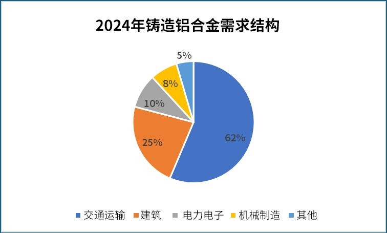 数据来源:同花顺,东航期货投资咨询部 3.3下游应用 铸造铝合金下游应用企业多为压铸厂、汽车零部件厂或者汽车整车厂等。2024年我国铸造铝合金表观消费量约为673万吨,约合1300亿元。随着汽车轻量化和新能源汽车的持续发展,对高性能铝合金的需求将不断增加。2024年我国铸造铝合金终端需求分布呈现“汽车主导、多元增长”的格局,交通运输(尤其是新能源汽车)仍是最大消费领域,建筑、电力电子等领域需求结构加速升级。