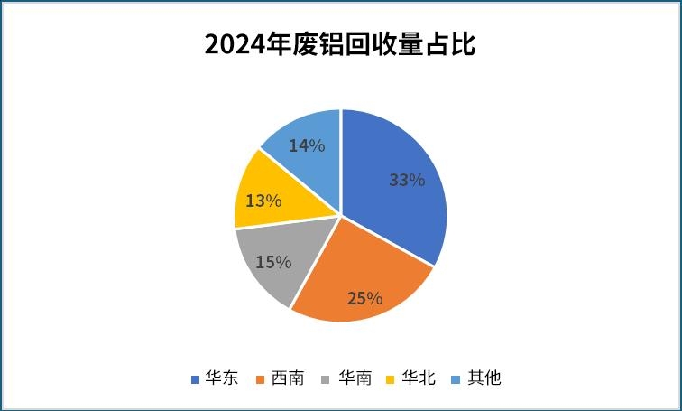 数据来源:东航期货投资咨询部铸 造铝合金产业链覆盖从废料回收到终端应用的完整链条,核心环节可分为原料供应、中游制造、下游应用三部分。 3.1原料供应 铸造铝合金的原料供应企业主要包括废铝回收企业、铝制品生产企业、废铝贸易企业等。我国废铝供应以国内回收为主,进口废料为辅,国内方面以旧料为主,新料为辅。中国废铝回收行业主要由大型综合性回收处理企业和中小型区域性回收商构成。2023年,大型企业的市场份额占比约为60%,中小型企业占40%。华东地区是中国废铝回收产业最为集中的区域,2024年该地区的废铝回收量占全国总量的33%,西南地区占比为25%。华南和华北地区分别贡献了15%和13%的回收量,其他地区合计约占14%。未来两年,西南地区的废铝回收量预计仍将显著增长。