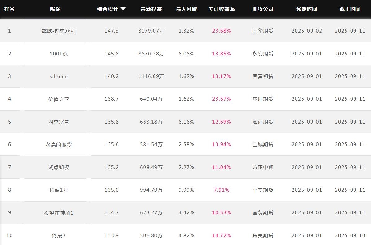 2025年9月【月度排名】(2025年9月1日-9月30日)