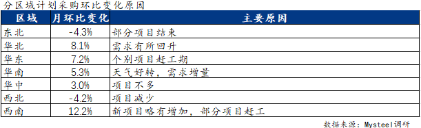 从本期调研结果来看,9月份施工企业计划采购量环比增加,但增幅较小,主要原因是新项目相对较少,部分区域受到高温多雨的拖累,因此整体需求没有明显增加。