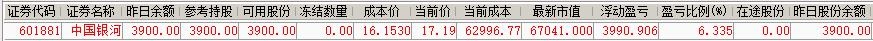 | 账户初始资金:49568.55元 参考市值:67041.00元 账户资产:67137.82元 截至今日账户A股盈亏:17569.27元 账户净值:1.354 资金股份