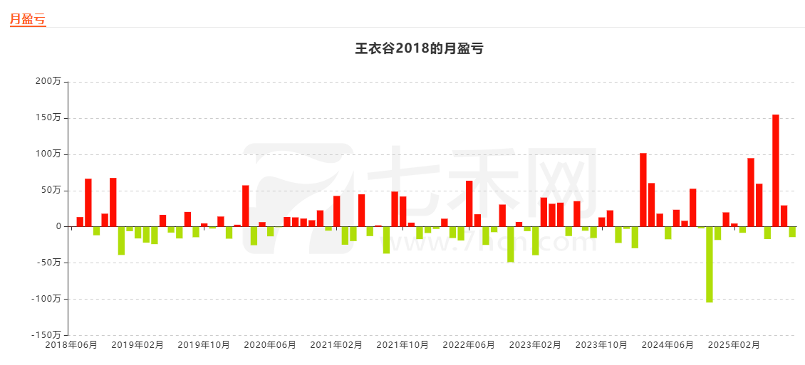 从每月盈亏图来看,最高一个月盈利超过154万元,亏损最多的一个月亏超104万元。