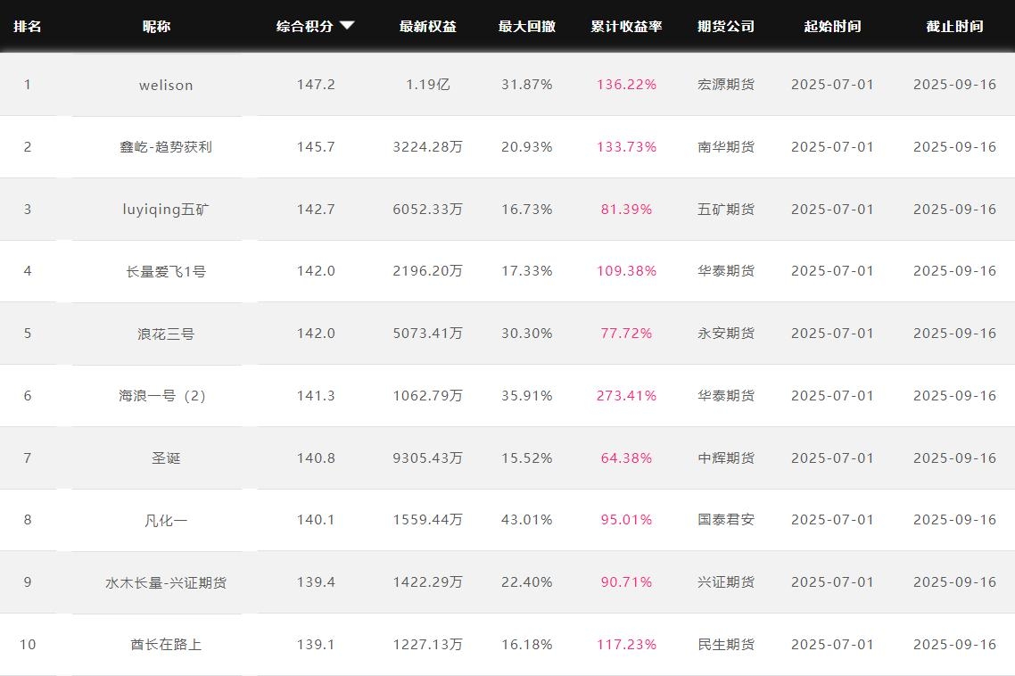 2025年9月【月度排名】(2025年9月1日-9月30日)