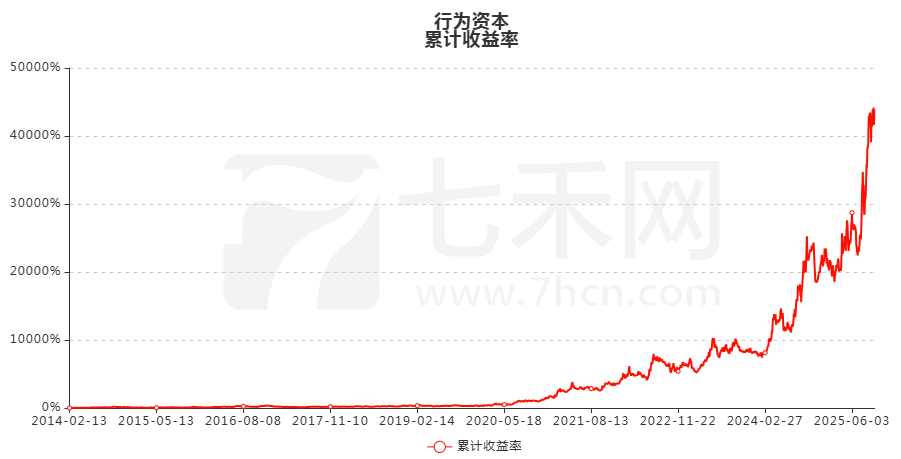 账户自2014年2月开始在七禾网量化排行榜展示交易,账户净值震荡攀升。截至目前,账户累计收益率43860.19%,累计净利润2631.39万元,最大回撤55.75%。