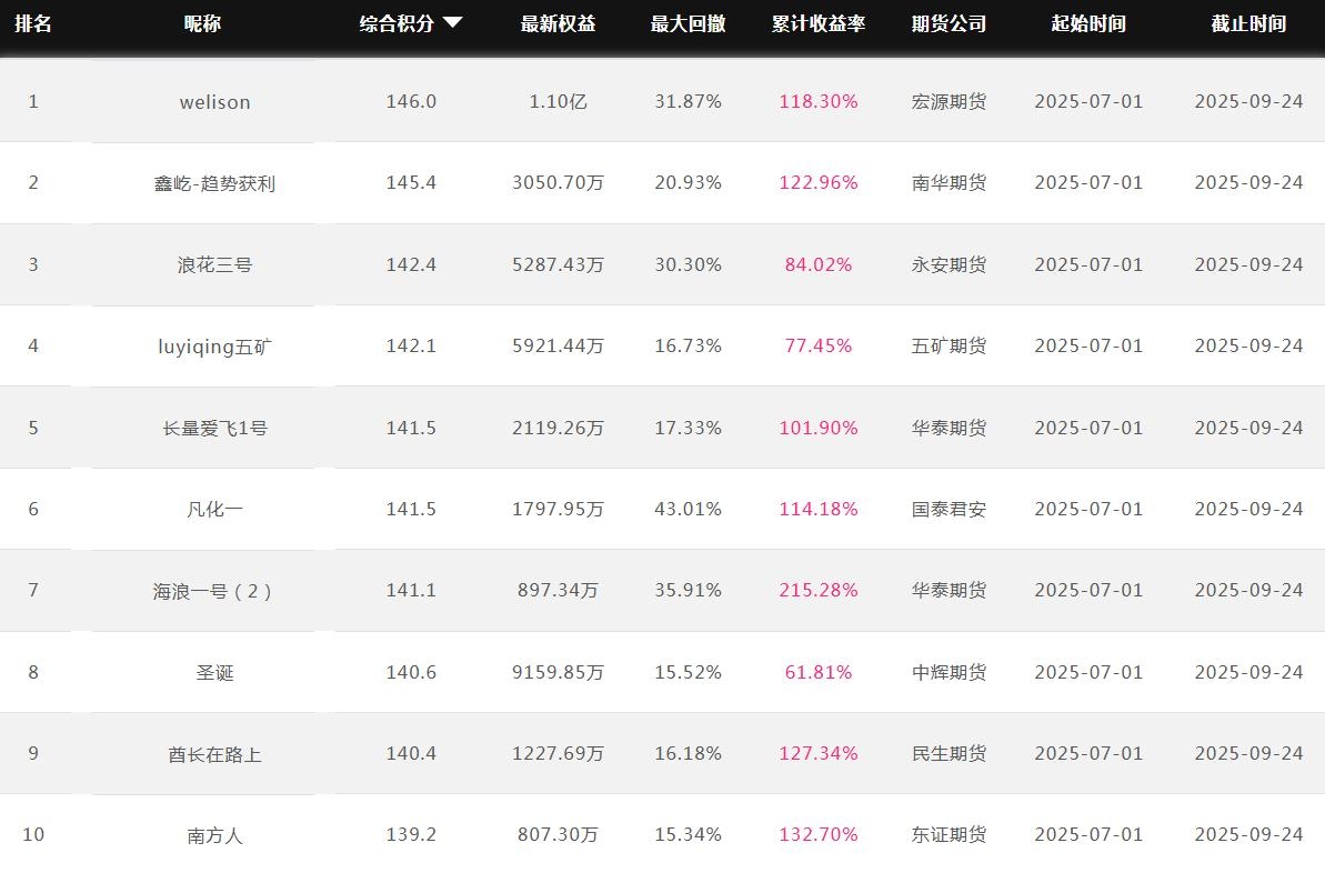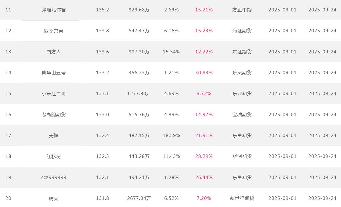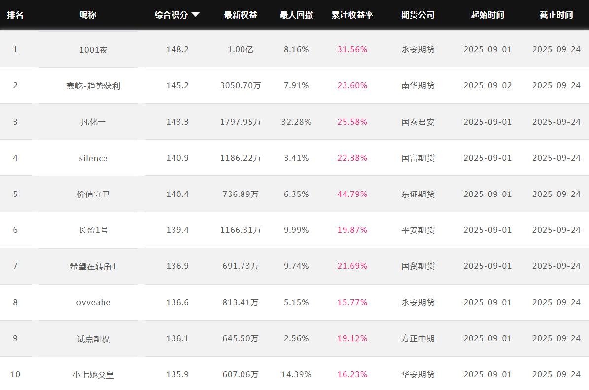 2025年9月【月度排名】(2025年9月1日-9月30日)