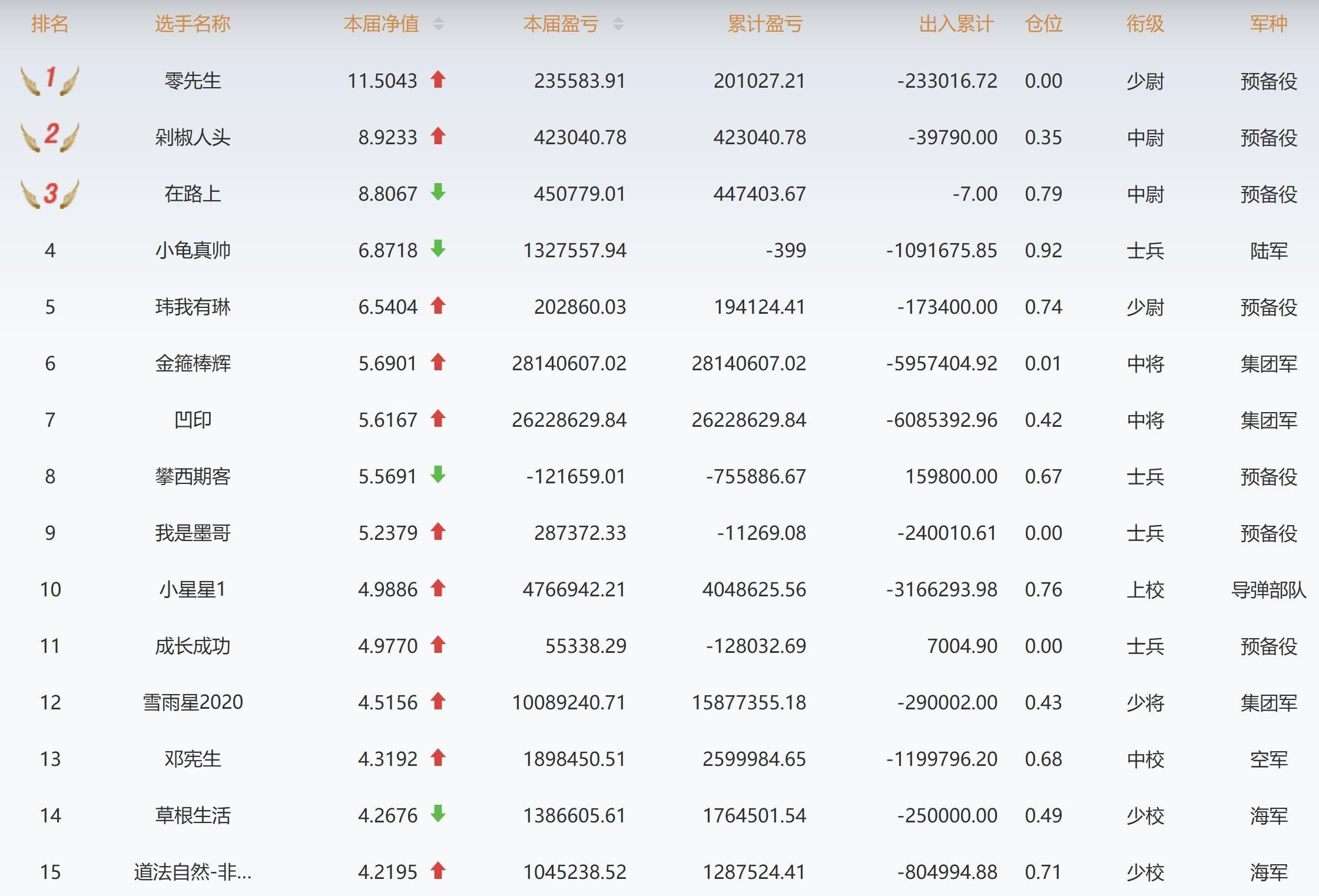 (更新日期:2025年10月15日)本届净值为第十五届开赛以来选手的单位净值