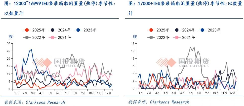 二、大型集装箱船特检情况 红海冲突爆发、航司开启绕行已近2年,额外航程带来的供应偏紧红利逐渐消退,市场运力宽松的压力开始显现。为应对这一局面,船公司已安排更多船舶进行坞修,其中部分船舶是由于去年市场景气度高,原定进行的船舶特检被推迟(特检最多可推迟两次,合计约半年)。 然而,根据我们对于修船企业的调研,今年修船市场整体繁忙,尤其是由于环保改造需求旺盛——如有机硅喷涂或节能装置加装等项目,使平均在坞时间从常规的15天延长至一个月甚至更久。这也导致修船厂档期紧张,船公司安排修船的灵活性受到限制。