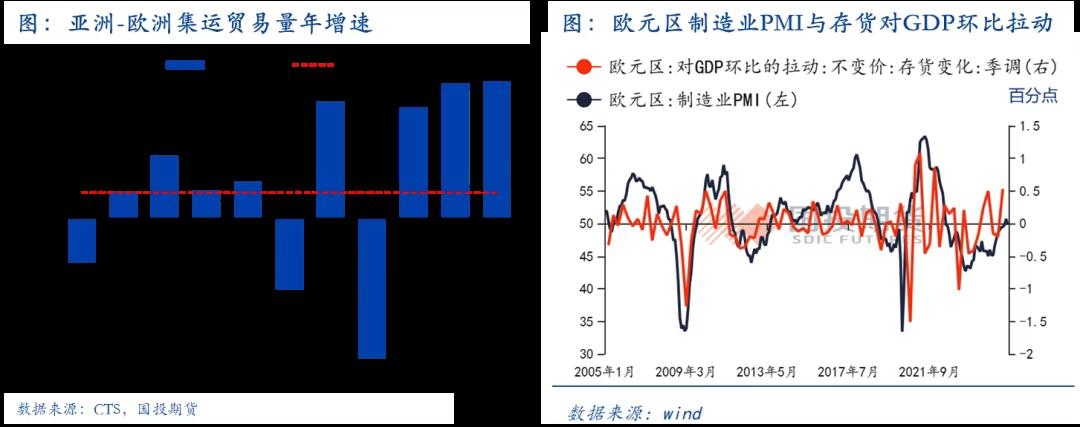 | 引言: 去年红海绕行事件发生后,集运市场运价显著上涨;而今年叠加特朗普政府对等关税等因素,全球贸易受到进一步扰动,运价延续了较大波动。但自8月以来,尽管欧线船舶仍全部绕行好望角,运价却出现快速回落,至9月末已跌至2023年12月红海绕行以来的最低点。为探究欧线市场需求与供应端的变化趋势及未来走势,我们在国庆节前走访了3家船公司及货代物流企业,2家货主公司,2家修造船企业,1家咨询机构,1家租赁公司,并基于调研结果撰写本报告。 需求端:韧性有望延续但增速或将放缓 今年以来,亚洲—欧洲的集运贸易量同比增速达到约10%,属于历史较高水平。然而,尽管欧线运价中枢仍处于历史较高水平,其价格弹性却明显不及去年。 从调研反馈来看,不同货代企业的体感存在差异。整体上,多数企业认为货量同比有所上升,但由于客户结构和货品类型不同,对增速的感受不尽相同。这一现象与宏观数据基本一致:从库存周期角度看,随着欧洲经济逐步恢复,2024年底开始欧洲库存对其GDP的拖累开始边际收窄,来到2025年库存对GDP转为拉动,综合制造业PMI情况来看,欧洲处于一轮小的补库周期中,带动进口需求保持稳定。