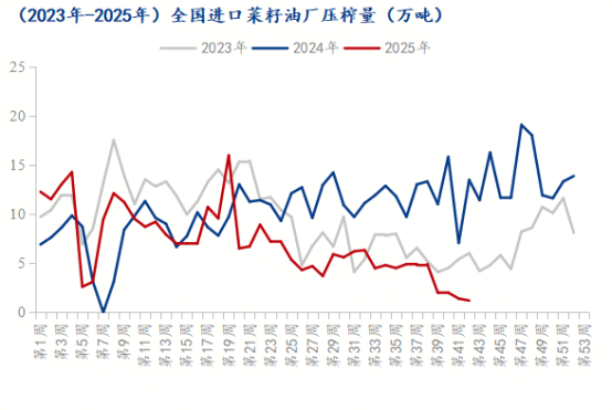 | 报告品种:菜粕 原文链接:https://mp.weixin.qq.com/s/4md0eVPKHZIAetpe7MkANA 自中加关税落地以来,中国菜籽及菜粕进口供应链的韧性不断经受挑战,市场对供应缺口的预期始终是悬在行业上方的刀刃。但近期市场传来新动态,通过持续向澳洲采购菜籽,原本被看好会在四季度出现的供应缺口,已顺利后移到2026年一季度,而需求的疲软对菜粕现货价格依旧有所打压。 截至第42周,Mysteel调研数据显示,沿海主要油厂菜籽库存0.6万吨、菜粕库存0.78万吨,尽管库存总量偏低,但消化速度缓慢,仍对现货价格形成进一步压制。加工端方面,周度油厂菜籽压榨量仅1.2万吨,开机率低至3.20%,在加拿大菜籽进口受限的背景下,国内菜粕加工规模持续受限。值得关注的是,2025年中澳关系迎来积极转变,多个领域贸易限制逐步取消,推动双边经贸合作深化,关系重回正轨的趋势明显,中澳菜籽贸易后续有望逐步恢复,或为国内供应端带来新的变化。