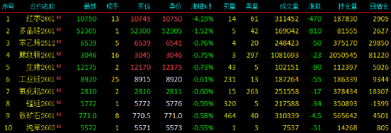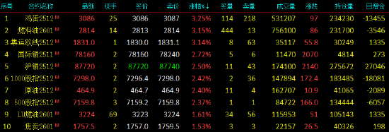 | 2025年10月24日,国内期货主力合约涨多跌少,燃油、集运欧线、鸡蛋涨超3%,国际铜涨近3%,沪铜、SC原油涨超2%。跌幅方面,红枣跌超4%,多晶硅跌超1%,螺纹跌近1%。