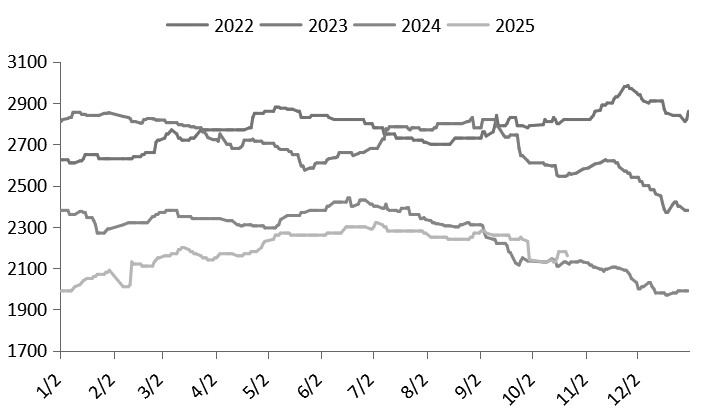 图为北港玉米收购价(单位:元/吨) 生猪养殖状况影响 与新玉米供应增加形成鲜明对比的是,饲料及养殖行业对玉米的采购意愿持续低迷。10月中旬,笔者在吉林和辽宁玉米产区进行消费调研时发现,饲料企业虽然看好四季度的饲料消费,但是对玉米和小麦的采购非常谨慎。有饲料企业负责人表示,2025年是全国玉米大丰收的一年,从企业的调研数据来看,全国多地玉米单产增加幅度在8%~10%,这在历史上是较为少见的。在全球谷物大丰收和中国玉米产量、质量双增的情况下,企业采购更为谨慎。从采购的时间节点来看,需要满足两个条件:一是要等到华北玉米减产的数量最终确定,二是要等到东北玉米集中上市的时间来临。在这两个条件满足之前,企业更多采取随采随用策略,不会急于增加库存。 另外,猪价下跌,生猪养殖处于亏损状态,这也是养殖企业不急于采购玉米原料的主要原因。进入10月份,生猪养殖持续亏损,且亏损幅度明显加大。卓创数据显示,10月23日,自繁自养生猪的养殖利润为-183元/头,外购仔猪的养殖利润为-319元/头。养殖企业表示,饲料原料价格偏弱运行,饲料成本环比下降。如果四季度猪价持续低迷,养殖深度亏损会导致生猪养殖规模在2026年出现缩减。玉米市场高供应、弱需求的局面将持续加剧,玉米期现货价格或继续下行。 责任编辑:七禾小编 |