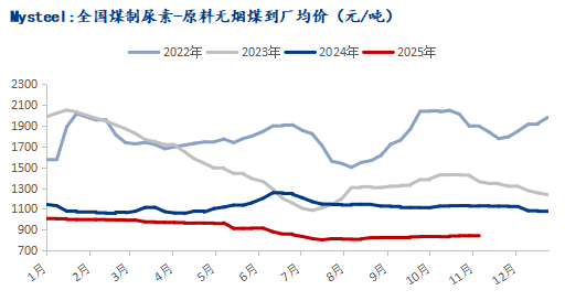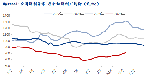 | 报告品种:尿素 原文链接:https://mp.weixin.qq.com/s/gHnJMEMSeJ__VZ2BdHBaBg 近期,主产区市场煤拉运积极性提升,多数煤矿销售顺畅,坑口煤价普遍上行调整,尿素企业原料煤现多以刚需采购为主,库存维持常规水平,据了解尿素样本企业气化烟煤到厂价较上周涨10-30元/吨,无烟块煤到厂价较上周涨20-30元/吨;尿素市场报价僵持偏稳运行,主流区域部分低价成交表现尚可,短期内贸易商及复合肥厂适当跟进,工厂虽有待发订单支撑,但上行动力稍显不足,在原料煤价格持续上涨之下,企业利润空间不断收窄,个别已接近成本线。本文将从供应、成本、需求三个方面对尿素市场展开分析。 供应方面,前期煤制尿素企业装置检修较多,近期陆续恢复中,日产小幅回升,整体供应量高位波动,据了解,截止10月31日,全国煤制尿素日产14.82万吨,环比增加0.25万吨,同比增加0.47万吨。后续需关注气头企业冬季季节性限产及部分新增产能投产对供应端的影响。