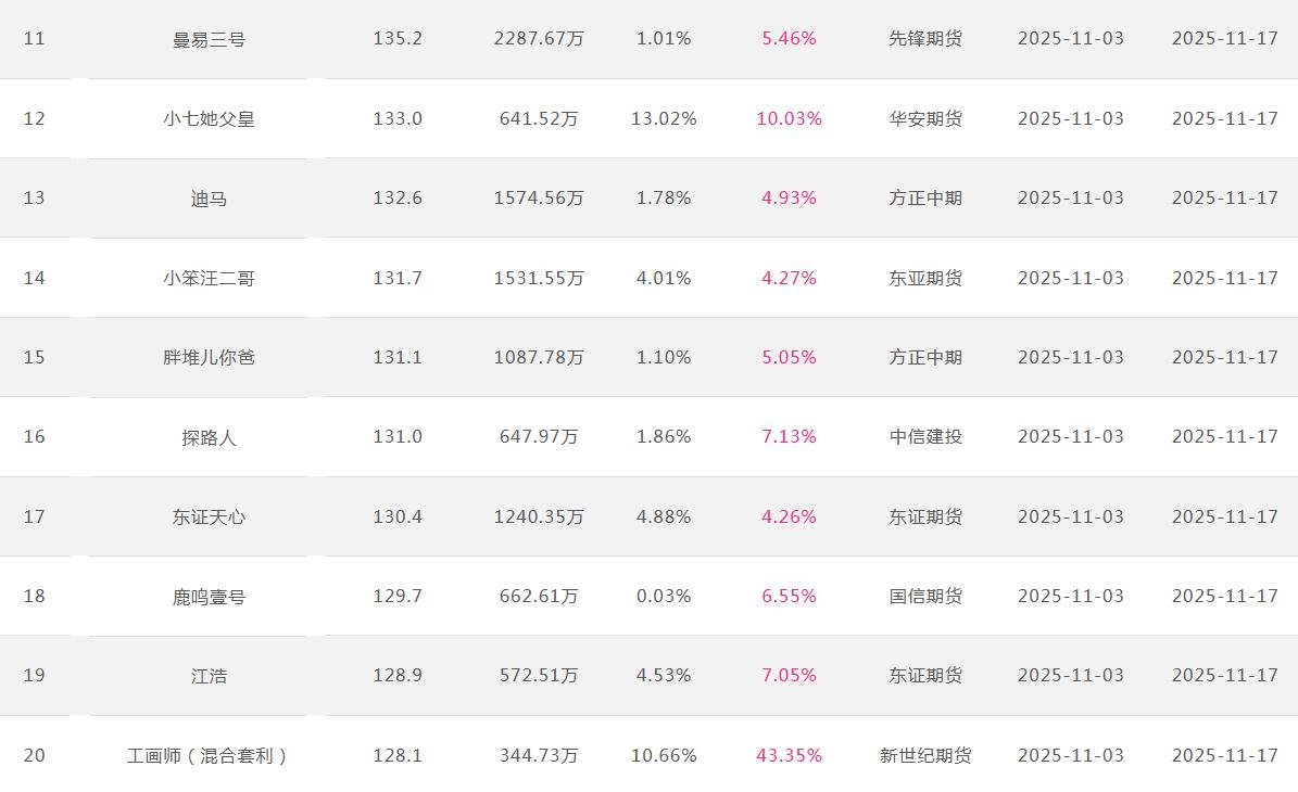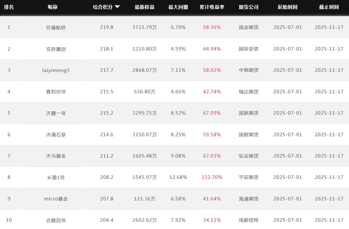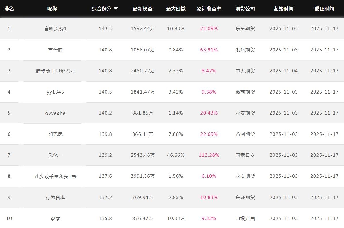 2025年11月【月度排名】(2025年11月1日-11月30日)