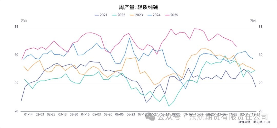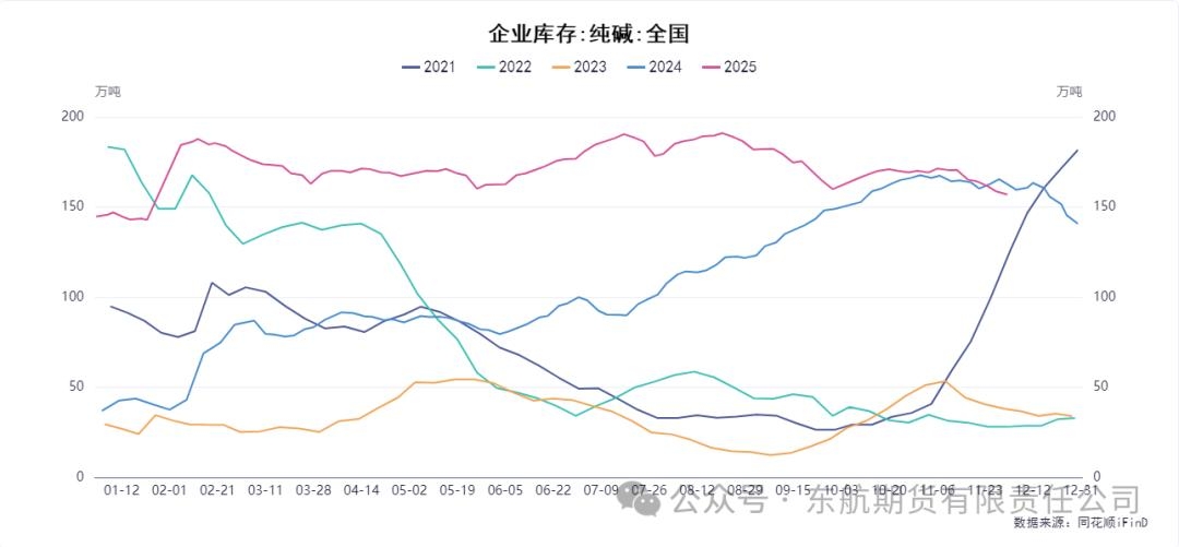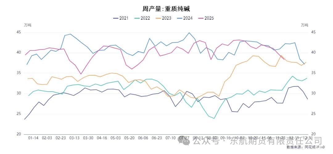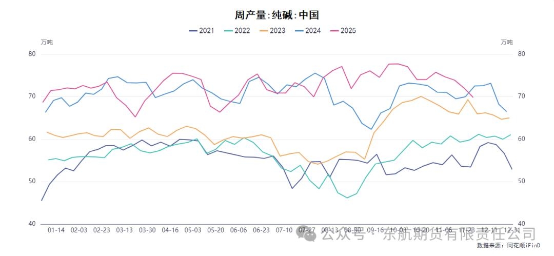 一、供应端分析:短期检修难改宽松大势,高库存与新增产能预期施压 纯碱供应端呈现短期扰动与长期压力并存的特征。从短期数据看,供应确实出现环比收缩。受部分企业检修影响,纯碱行业开工率环比下降1.2个百分点至81.94%,周产量减少至69.82万吨。其中,重碱与轻碱产量均有下降。伴随着产量的回落,企业迎来去库存化,企业总库存环比下降1.75万吨(-1.1%)至156.99万吨,其中重碱库存去化更为明显。这种短期供应收缩和库存下降,构成了市场多头的短期心理支撑,也是阶段性筑底的主要原因。 然而,当前的高库存和未来庞大的新增产能预期,才是主导中长期逻辑的关键。首先,尽管库存环比下降,但156.99万吨的绝对库存水平仍处于历史高位,巨大的社会库存对现货价格形成持续而强烈的压制,也限制了期货价格的反弹空间。当前极低的价格已导致行业普遍亏损,在一定程度上会压制部分高成本企业的生产积极性,但尚不足以引发全行业的趋势性、大规模减产。因此,短期产量的波动更多是企业的被动调整,而非产能出清,无法扭转供需宽松的大格局。