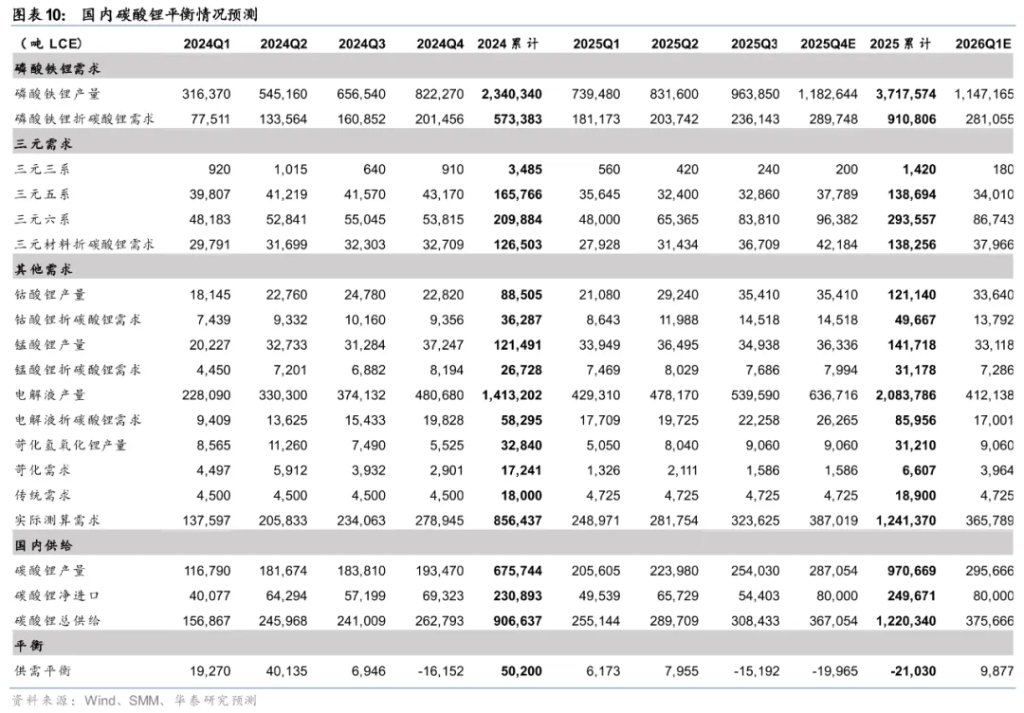 短期:26年宁德复产后国内或进入累库。考虑短期国内的情况,25年受宁德时代停产与下半年需求超预期影响,实际供需短缺预计在25年Q4集中体现。根据我们测算,25年国内碳酸锂总供给122.0万吨,共计短缺 2.1万吨,其中25年Q4总供给36.7万吨,短缺达2.0万吨。在维持当前9万元/吨价格水平不变的情况下, 26年随着宁德时代复产以及中矿、永兴等锂盐厂产能逐步爬坡,我们预计26年Q1将累库。