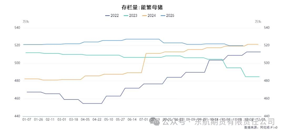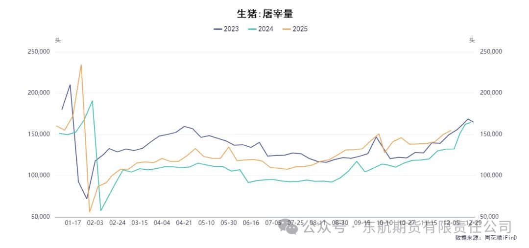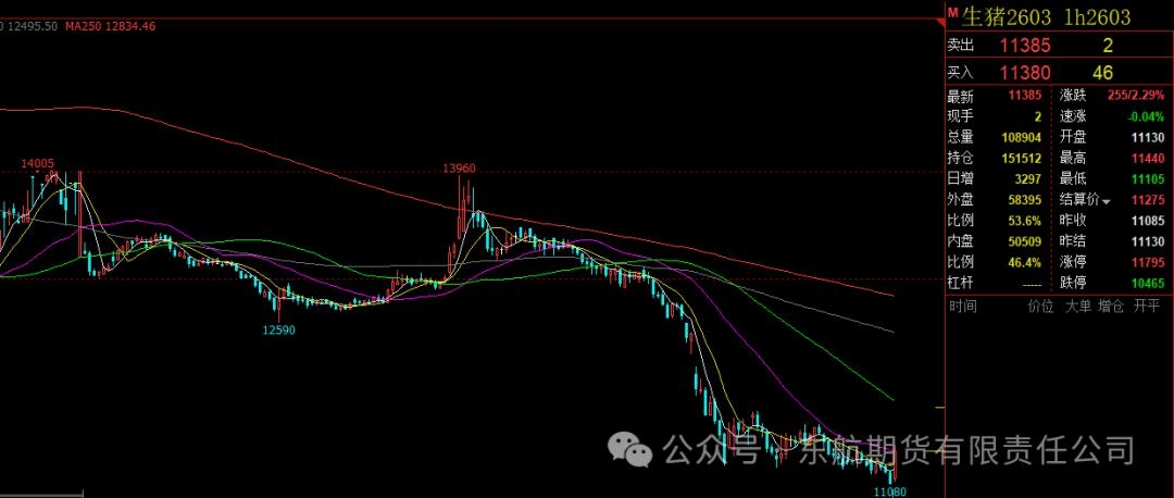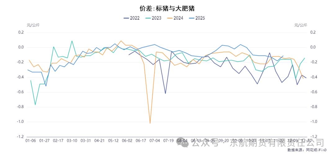 一、供应端:出栏压力持续释放,远期产能去化提供长期预期 生猪供应端的核心特征:短期压力加剧,长期预期回暖。短期来看,供应过剩的趋势明确且压力正在集中兑现。散户端受价格低迷影响,认卖程度高,市场供应充足。更值得关注的是,前期二次育肥形成的“增重累库”现象,不仅拉高了出栏均重,也冲击了肥猪与标猪的价差结构,对现货价格构成直接压制。截至12月5日,全国生猪出栏平均价格为11.19元/公斤,充分反映了当前市场沉重的供应压力。市场普遍预期,在年底冲量、二育出栏及高产能释放的共同作用下,12月生猪出栏量将继续增加,现货价格上方空间受限。 然而,从更长期的产能视角观察,市场也出现了一丝积极信号。农业农村部数据显示,11月能繁母猪存栏量继续环比小幅下降,表明行业产能去化进程虽慢但仍在持续。这一数据好于市场部分悲观预期,为远月合约提供了底部支撑和未来价格修复的预期基础。因此,当前市场交易的是“近月承压”的现实与“远月改善”的预期。