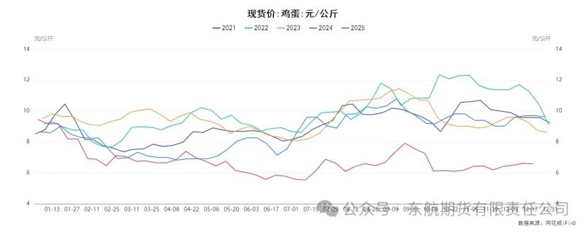 二、需求端:季节性备货预期提供托底,消费疲软本质抑制上行空间 当前鸡蛋需求端的核心特征为季节性脉冲可期,趋势性驱动匮乏。从季节性规律来看,需求端确实存在潜在的利好窗口。时值年末,冬至、元旦等节日接连而至,紧随其后的便是最重要的春节消费旺季。历史经验表明,这一时期食品加工企业会为节日生产进行原料备货,家庭消费也会因节庆有所增加。目前市场信息也证实,部分食品厂已显现出在现货低价区间进行“抄底”备货的意愿。这种季节性的备货预期,是支撑当前现货价格在成本线附近徘徊、难以出现崩塌式下跌的最主要心理防线和市场共识,也为价格在低位区间提供了明确的支撑。 然而,剥离季节性滤镜,需求端的本质依然疲软,这构成了压制价格反弹高度的“天花板”。市场的实际表现清晰地揭示出消费的脆弱性:终端需求对价格变动的弹性极高。具体表现为,当现货价格跌至低位时,下游渠道敢于进行集中补库,推动市场走货“略有好转”;但只要现货价格尝试性上涨,哪怕是微小涨幅,下游的采购意愿便会迅速冷却,拿货节奏立即放缓,导致涨价行情无法持续。这种现象反复出现,深刻地反映出在宏观经济环境下,无论是家庭日常消费,还是餐饮、食堂等团体消费,其恢复力度均不及预期,整体消费能力和意愿对高价鸡蛋的接受度非常有限。 因此,今年的“节日效应”被大幅弱化,市场呈现出显著的“旺季不旺”特征。需求的疲软不仅框定了现货价格的波动上沿,还进一步加剧了市场对春节后传统消费淡季的深度担忧。这种担忧情绪直接反映在期货盘面上,导致对应春节后时期的合约承受巨大压力,其价格表现显著弱于现货及近月合约,甚至存在深度贴水现货的可能。因此,需求端在现阶段所扮演的角色,更多的是“托底”而非“拉升”,它决定了价格的下限,却无法提供突破上行的持续动力。