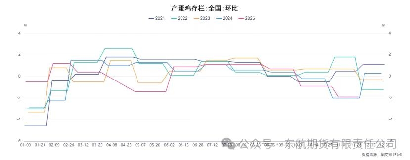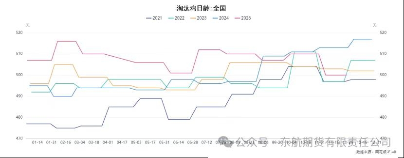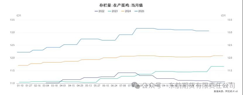 一、供应端:产能去化初现,但绝对压力与结构矛盾仍存 供应端的核心是趋势性拐点确认,但去化的路道依然漫长而艰难。最值得关注的积极变化在于,行业产能周期可能已迎来转折。数据显示,11月在产蛋鸡存栏量实现了环比下降,这是市场期盼已久的信号,增强了产能已进入确定性去化通道,构成了支撑远月合约价格、并引发市场对明年中后期可能出现供应阶段性偏紧的预期。 然而,产能的“缓降”远非“速降”,当前供应端的压力依然沉重。首先,存栏的绝对水平依然高企。即便连续环比下降,当前在产蛋鸡的存栏基数仍然处于历史偏高水平,鸡蛋的日度产出量在短期内依然充裕,足以覆盖温和的需求增长。 其次,淘汰环节的结构性矛盾突出。尽管前期因价格低迷出现了集中淘汰,但近期数据显示老母鸡出栏量已连续数周环比微降。更为关键的是,当前淘汰鸡的日龄仍处于相对高位,且进一步下降的空间受到养殖效率和资金状况的制约。部分养殖户存在明显的观望心态,计划将老鸡留待春节前后进行集中淘汰,这种“扎堆”淘汰的预期,反而可能将供应压力后移,并在传统旺季对市场形成意外的冲击。 再者,补栏意愿出现反复扰动。虽然长期产能下行趋势形成,但近期鸡苗价格和补栏数据均显示养殖端的补栏意愿有所回暖,如果这样的趋势持续,将为远期的产能补充埋下伏笔,延缓整体去产能的进度与深度。此外,不容忽视的还有“隐形库存”的压力,即市场普遍关注的冷库蛋库存。综上所述,供应端的故事是“希望与压力并存”,去产能将是一个缓慢、反复且充满不确定性的过程。