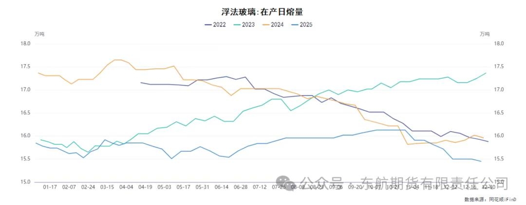 一、供应端:冷修持续推进但去库缓慢,高库存仍是核心矛盾 玻璃供应端呈现产能收缩进行时,但库存消化疲软的特征。积极的信号来自于产能的主动收缩。为应对持续亏损和库存压力,玻璃生产企业冷修进程仍在继续。截至12月26日数据显示,当前全国浮法玻璃生产线日熔量已从高位回落,主要由于产线的放水冷修导致。市场预期,在月底及明年一月,仍有部分产线存在冷修计划。此外,工信部严禁新增产能的政策从长期约束了行业供给天花板。行业在产产能呈现缓慢下降趋势,有助于缓解远期供应压力,是当前市场最重要的潜在利多因素。与缓慢下行的日熔量形成鲜明对比的是,居高不下的库存成为压制市场的核心现实。尽管重点监测省份的生产企业库存近期曾出现小幅回落,但全国样本企业的总库存绝对量依然处于近6000万重箱的高位,同比增幅接近30%。分区域看,库存结构分化,华北等地累库压力依然较大。虽然供应端开始减产,但力度和速度还不足以快速消化此前积累的天量库存。当前中游贸易商库存也偏高,在需求疲软的背景下,其进一步承接厂库库存、为生产企业“蓄水”的能力已十分有限。库存的缓慢去化,严重拖累了供应收缩对价格的提振效果。市场普遍认为,在供应端的减量真正压缩到供需平衡点之前,中高游的库存将持续压制玻璃价格的反弹高度,因此,我们预计冷修消息带来的上涨很难持续。