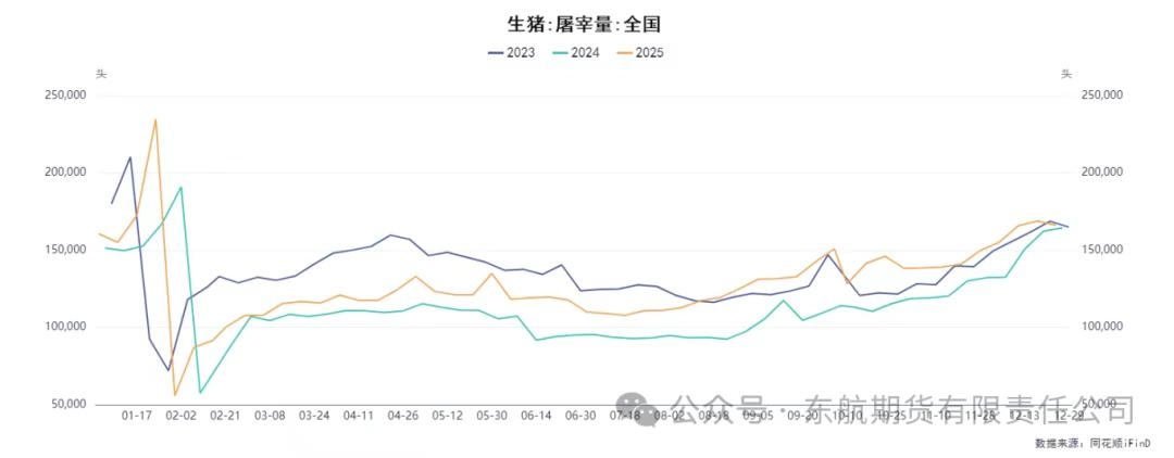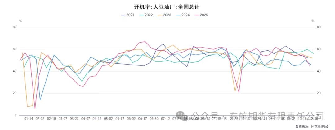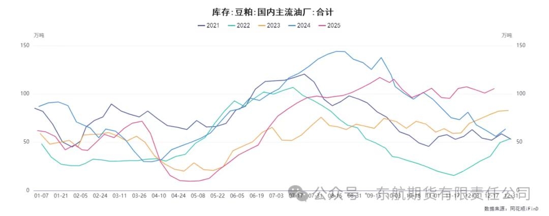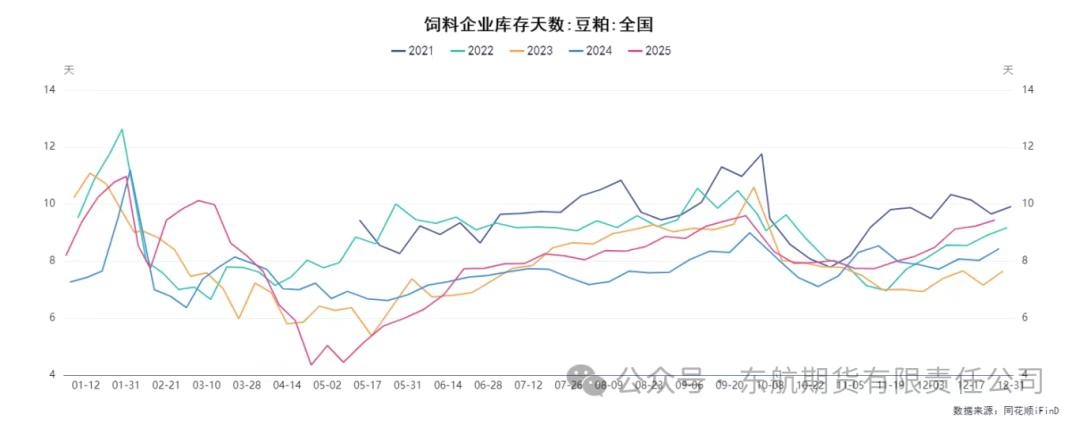 二、需求端:节前备货提供阶段性支撑,长期驱动仍显不足 当前豆粕需求端处于“季节性备货启动,但采购心态谨慎”的状态,呈现脉冲式特征而非趋势性走强。积极的方面来自于季节性的备货需求启动,库存明显提升。时值年末,临近元旦和春节,下游饲料企业及养殖企业为应对节日生产和消费,存在进行春节前备货的需求。部分油厂顺势放价,促进了下游对明年1-4月基差的采购。油厂方面,由于成本支撑和压榨利润不佳,挺价意愿较强,现货价格升水,为豆粕价格提供了阶段性的底部支撑和反弹契机。 然而,需求端的限制同样明显。首先,中下游的采购心态普遍谨慎。饲料企业及养殖企业虽进行备货,但多以刚需补库为主,缺乏持续性的大规模补库需求。真正的需求季节性转旺可能需等待至2026年四季度,届时供应压力有望缓和。因此,当前需求端的支撑更多是季节性、阶段性的,力度不足以对冲庞大的供应压力。