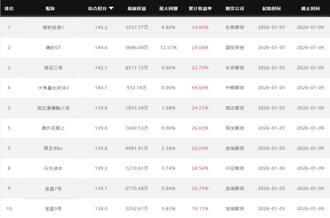 2026年1月【月度排名】(2026年1月1日-1月31日)