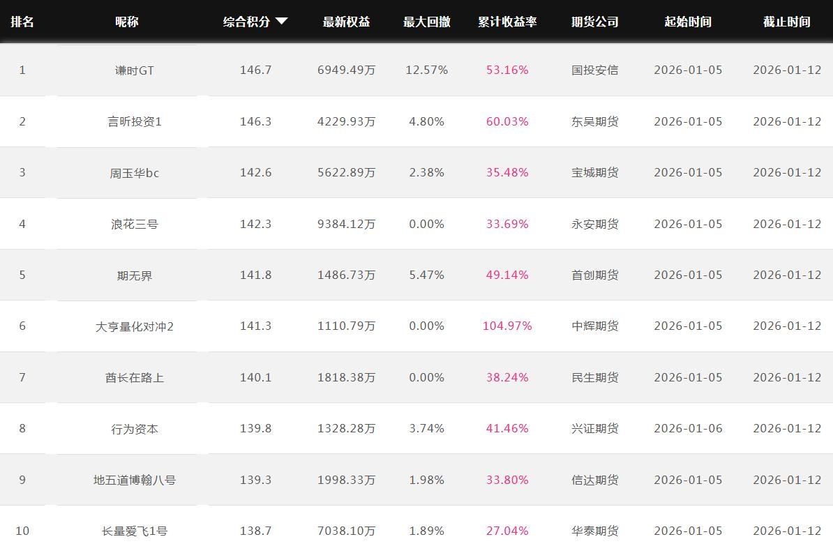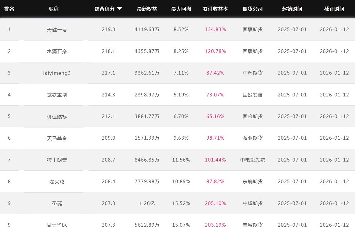 2026年1月【月度排名】(2026年1月1日-1月31日)