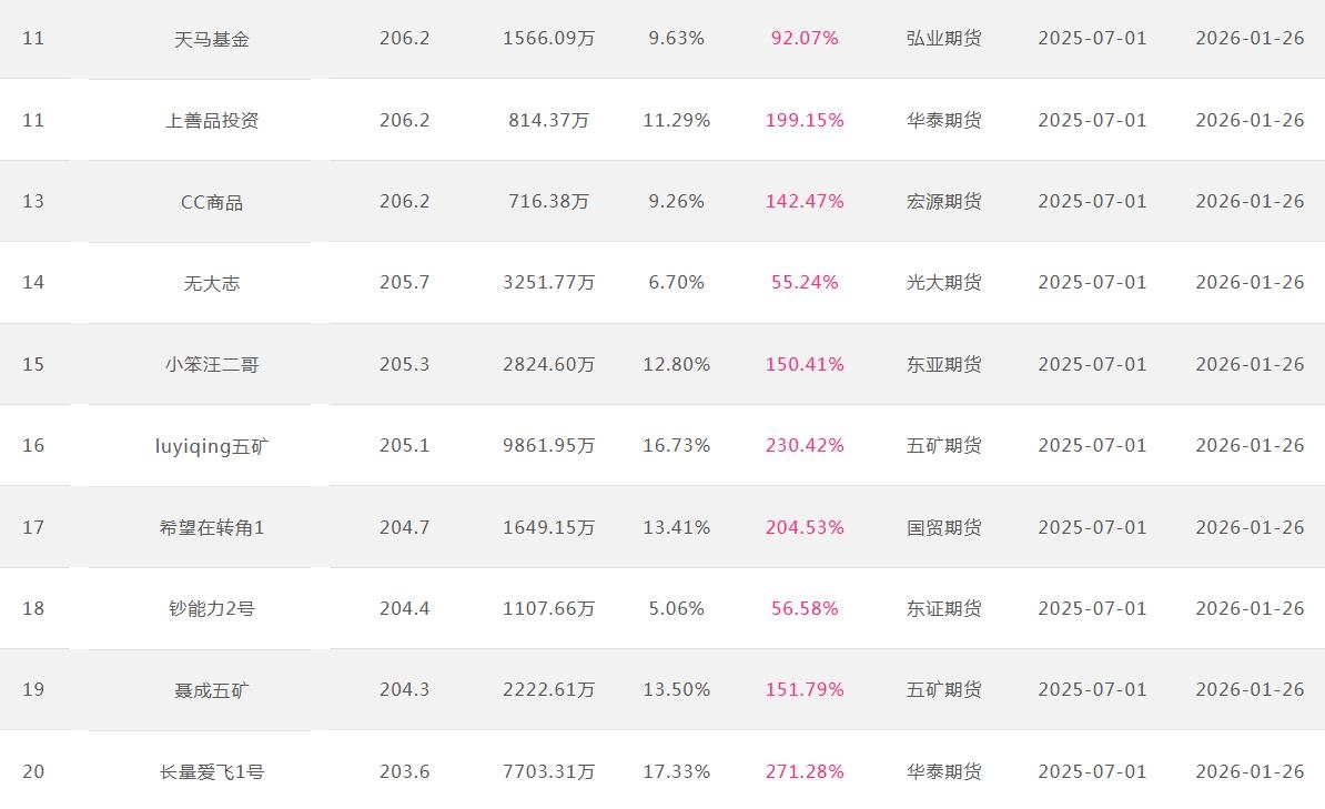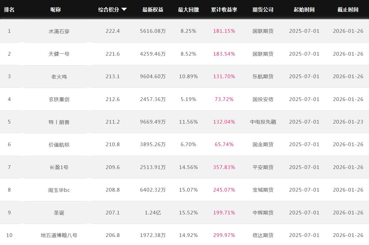 2026年1月【月度排名】(2026年1月1日-1月31日)