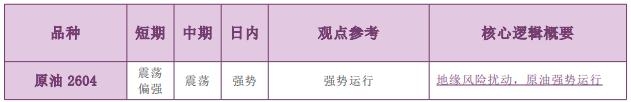 备注: 1.有夜盘的品种以夜盘收盘价为起始价格,无夜盘的品种以昨日收盘价为起始价格,当日日盘收盘价为终点价格,计算涨跌幅度。 2.跌幅大于 1%为弱势,跌幅 0~1%为偏弱,涨幅 0~1%为偏强,涨幅大于1%为强势。 3.偏强/偏弱只针对日内观点,短期和中期不做区分。 主要品种价格行情驱动逻辑—商品期货能源化工板块 原油(SC) 日内观点:强势 中期观点:震荡 参考观点:强势运行 核心逻辑:随着美以向伊朗发动军事袭击,中东地缘风险快速升温,伊朗宣布关闭霍尔木兹海峡,原油天然气等能源物资无法从中东向外运输,原油溢价或将大幅升温。尽管OPEC+产油国宣布二季度开始重新恢复增产,但短期地缘因素盖过原油偏弱供需基本面,在偏多因素提振下,国际原油期货价格大幅上涨,或带动本周一国内原油期货大幅高开强势运行。预计后市国内原油期货或维持偏强走势。警惕美国宣布释放战略原油储备以平抑国际原油价格。 责任编辑:七禾小编 |