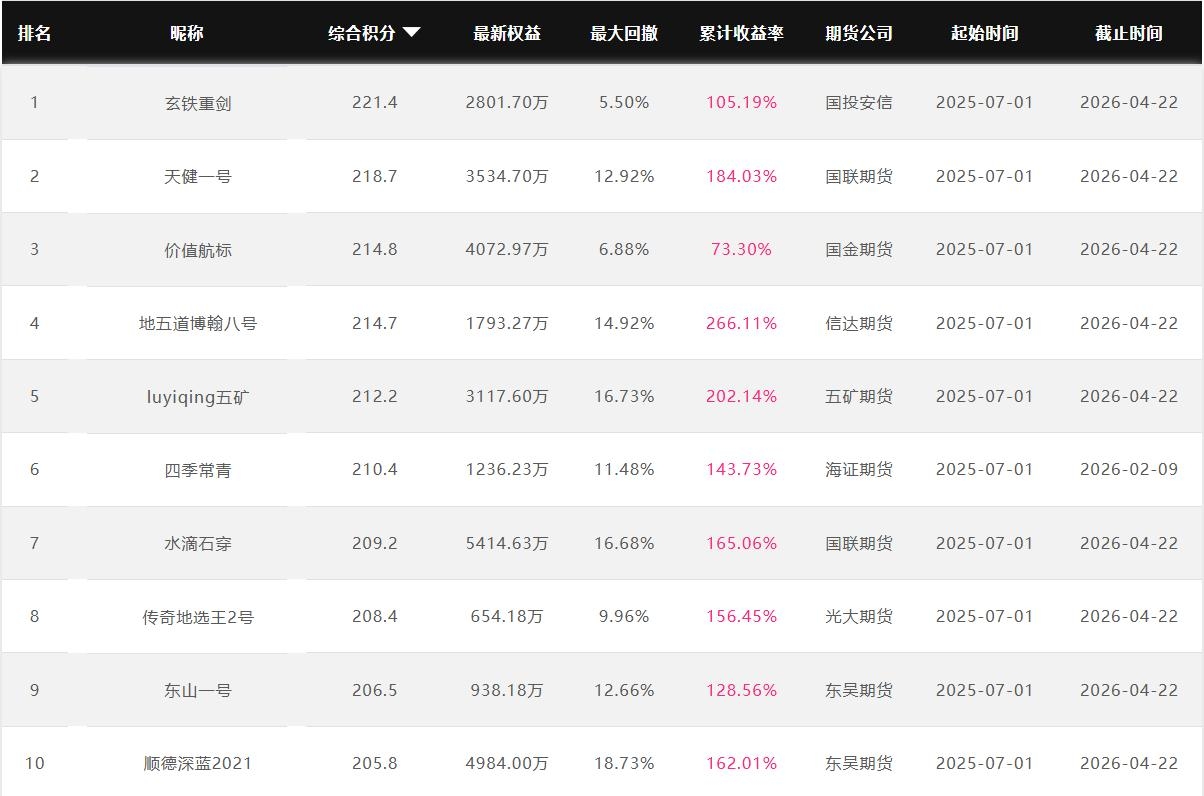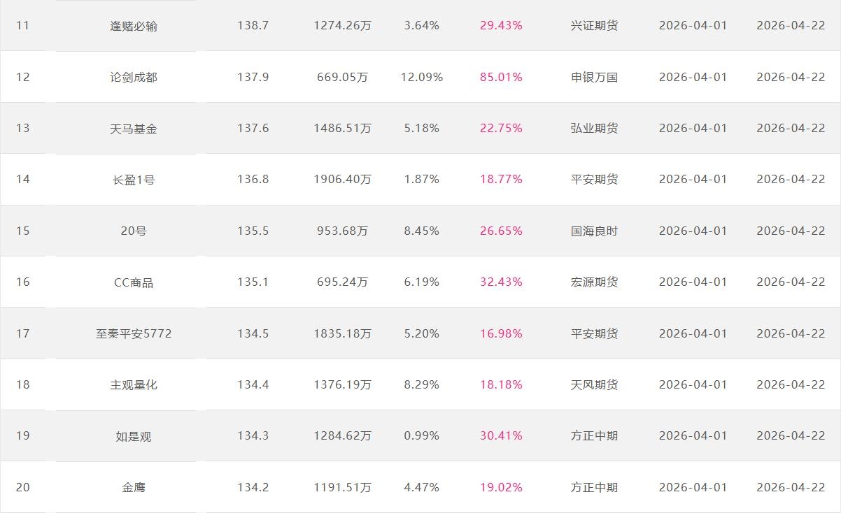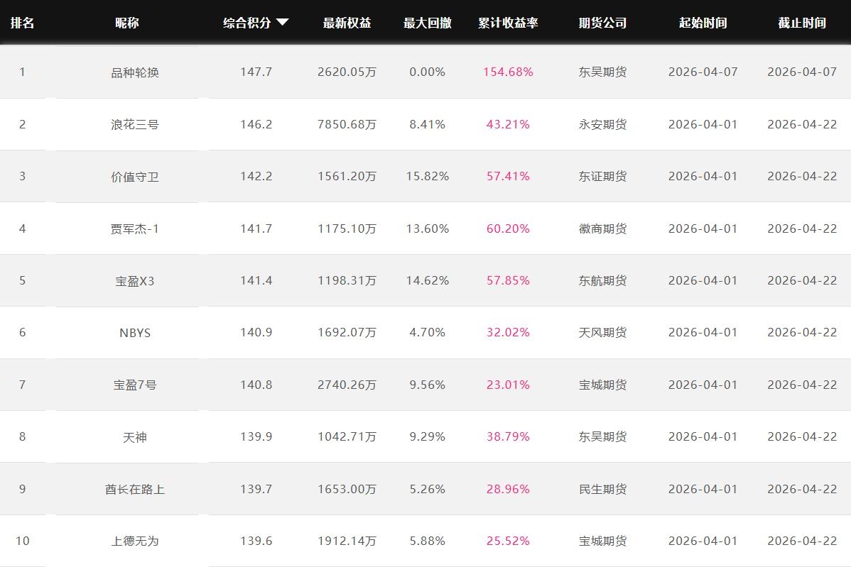 2026年4月【月度排名】(2026年4月1日-4月30日)
