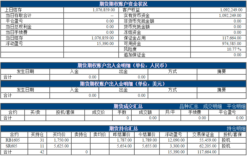 若要联系【阿超投资】,与其探讨资产管理方面的合作,七禾网可为您预约,电话:0571-85803287 今日权益:1092249.00元 昨日权益:1079749.00元 以下表格为最近一个交易日的资金、成交、持仓情况,若需看之前的,请点击分页 阿超投资账户12月31日资金权益 以上数据来源于保证金监控中心 责任编辑:李婷 |
