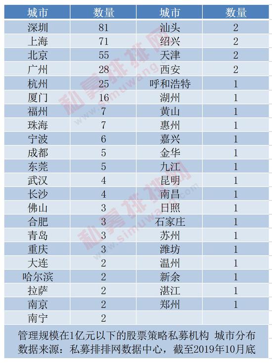 反观百亿私募,虽然高收益逊色于1-10亿私募,最高收益仅为57.23%,但19家百亿股票策略私募无一亏损,最低收益也有6.60%,首尾收益仅相差50.63%,减少了投资者甄选优质私募管理人的难度。 相较于中小私募,百亿私募的投资交易更为严谨,对个股仓位限制,对行业的涉及,均有严格要求。 强者恒强,也是不少百亿私募的真实写照。近年来百亿尤其注重人才引进,尤其高端人才。近期,就有前德意志银行大中华区首席经济学家及股票策略主管张智威加入保银投资,担任保银投资首席经济学家。张智威曾在加拿大中央银行、国际货币基金组织、野村证券、德银等机构工作多年,在加盟保银投资后,主要负责宏观策略研究。今年年初,凯丰投资也迎来首席经济学家高滨,在此之前,高滨曾担任美银美林董事总经理,主管环太平洋地区利率策略研究部。 私募行业的发展壮大不仅吸引了高端人才的加盟,也加快了公奔私浪潮。在去年的9月,百亿私募盈峰资本也迎来了新任掌门人蒋峰,蒋峰曾任南方基金董事总经理、首席投资官(专户)、社保基金投决会主席,在离开南方基金前,蒋峰的管理规模超过300亿元。 头部私募的品牌知名度与薪酬,均是引进人才的不二法宝。以今年新晋百亿量化私募的幻方量化为例,在人才方面的投入可谓是“下血本”,在新近发布的招聘信息中,深度学习科学家与工程师的年薪150万起,更有网友惊呼这是在和华为抢人才。 管理规模不足1亿难解温饱 收益频现垫底成“亏损王” 私募排排网研究中心在今年六月发布的一篇文中就提到,“国内有95%私募徘徊生死线,全国仅有365家私募能养活自己”。得出这一结论是基于将固定收益策略的盈亏平衡规模设定在30亿,其他策略设定在5亿,只有365家私募在这一标准之上,基本能实现收支平衡或持续盈利。 虽然都是1亿以下的规模,但生存环境却是云泥之别。管理规模在200万以下的私募,目标大多是保壳活下来,几乎没有募资意愿。即便管理规模在200万-1000万的私募,它们的抗风险能力偏弱,加上公司运营成本并不低,很容易在熊市中行情走向没落。 一般来说,管理规模在1000万-5000万的私募所管理的资金基本是自有资金或身边朋友的资金,对外募集资金的难度较大,属于解决个人就业或几个合伙人就业类型的私募。 对于即便管理规模在1亿元以下,但是仍在正常净值的这部分私募来说,他们对做好业绩、加大宣传曝光方面还是具有很强的积极性。通过统计管理规模在1亿以下、且仍在正常更新净值的股票策略私募公司共有361家,仅广东地区就高达127家,占比高达35.18%,主要分布于深圳、广州、珠海、东莞、佛山,仅深圳就有81家,汕头与惠州也有零星分布。除此以外,上海71家,北京55家,杭州和厦门则各有25家和16家。
