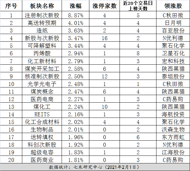 注:该表统计标的为沪深两市所有相关板块,统计时间为当天下午15:00收盘后。(声明:统计数据不构成投资建议,股市有风险,投资需谨慎。