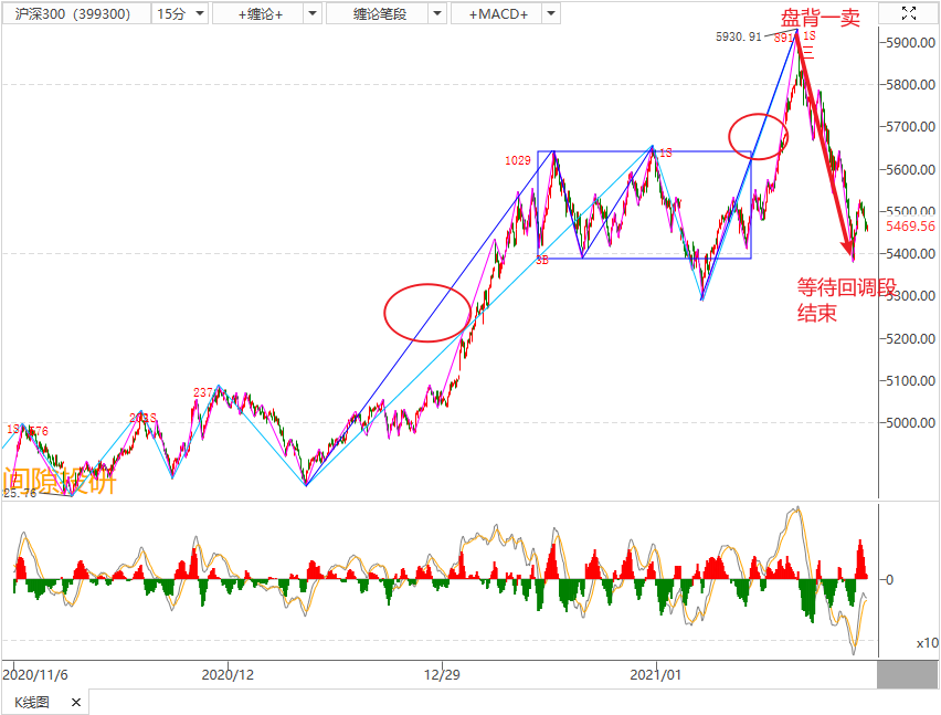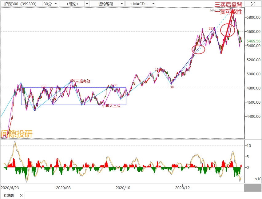 2,2月5日确认30分钟(中线)回调段结束,关注形成三买后盘背一卖的可能性,当确认时,股指期货(IF)空单开仓。