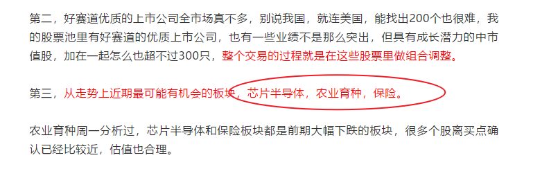 第三,昨天文章中提到三个看好的板块,今天保险和农业育种有所表现,需要强调一下,我说的看好的板块是长期而不是短期,短期一两天的行情不代表什么,对错都不重要。