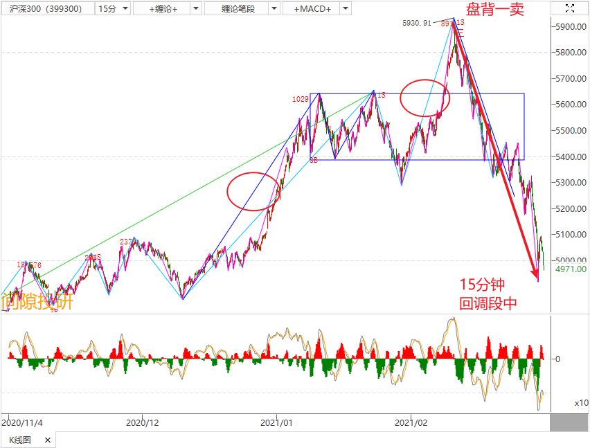 3,2月22日确认15分钟(中线)盘整背驰一卖,目前处于回调段中。