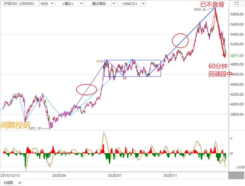 | 3-9 琛实缠论大盘复盘 板块上 长期看好消费,金融,医疗器械,医药,医美,科技,5G,军工,光伏,新能源,农业育种板块。 今天又是非常折磨人的一天,A股再一次反复横跳,早盘一度超过4000只个股下跌,然后午间又拉回了,下跌超过4%的创业板甚至一度翻红,然后午后又是一波酣畅淋漓的下跌。牛年第14个交易日,还没有闻到牛市的味道。 接下来谈一谈我的逻辑 第一,从指数的走势上看,昨天已经明确表示中长线安全的买点最早在3月下旬才能确认,还需要耐心等待,等确认我会第一时间告知大家。 今天盘面有些情绪性恐慌,每到这个时候,需要的不是心灵鸡汤,而是强大的自我心态调整,以及果断的应对能力。 第二,我长期看好的赛道会有一些标的早于指数确认中长线买点,当下看芯片半导体和农业育种先确认回调结束的概率大一些。 第三,这两天不少投资者朋友问,自己手中的白马蓝筹已经被套30%以上要不要割肉?如果是自有资金并且没有带杠杆,到这个位置是可以抗的过去的,等确认买点的时候手上有子弹还可以再加仓,但市场上大部分人没有这样操作的勇气。 第四,北上资金最近表现的是个短线高手,上午最多净流入50亿,之后减仓,全天净流入24亿,非常完美的做了T0。大盘下跌中,北上资金就分批买入,中间也做T,摊低成本,保持净流入,但龙头开的不大,因为北向资金也不清楚,什么时候下跌会真正结束。 先看沪深300缠论走势结论 间隙投研雷达上显示: 3月8日确认了60分钟上涨段结束,目前处于60分钟回调段。 3月4日确认了30分钟卖点,目前处于30分钟回调段。 2月22日确认了15分钟卖点,目前处于15分钟回调段。 对应股指期货(IF)接下来的操作思路: 第一,当下60分钟,30分钟和15分钟都处于回调段,当下只有一个思路,等待长线(60分钟)回调段结束,股指期货(IF)做多,这个确认时间点最快在3月下旬。 具体看沪深300指数缠论走势分解 1,3月9日确认了长线线(60分钟)上涨段结束,当下处于回调段。