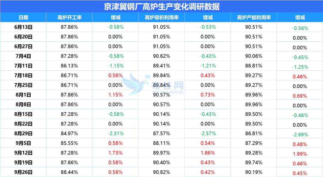 报告品种:螺纹钢 原文链接:https://mp.weixin.qq.com/s/-CGwEqgHUWYZdK8pQk7dZg 数据概述 高炉开工率:88.44%,较上周上升0.58%; 高炉容积利用率:90.82%,较上周上升0.42%; 高炉产能利用率:90.19%,较上周上升0.45%; 数据说明:京津冀钢厂高炉生产变化调研数据共检测51家钢厂,173座高炉,高炉总容积253138立方米,高炉日均铁水量703130吨。 数据详述 本周京津冀钢厂高炉开工率、高炉容积利用率、高炉产能利用率较上周上升。按个数统计,共统计173座高炉,其中检修20座,高炉开工率88.44%,较上周上升0.58%;按容积统计,检修高炉容积合计23230立方米,高炉容积利用率90.82%,较上周上升0.42%,高炉检修产能68970吨,高炉产能利用率90.19%,较上周上升0.45%。从当前形势看,供给端,钢厂生产积极性尚可,高炉开工率接连小幅回升,产量维持相对高位;需求端则表现平淡,下游订单未见明显改善,整体需求释放节奏偏缓。供需层面的“供强需弱”与成本端的刚性支撑形成对冲,多空因素交织下市场缺乏明确方向,短期来看,大概率维持震荡运行格局。 七禾带你去调研,最新调研活动请扫码咨询 更多调研报告、调研活动请扫码了解 |