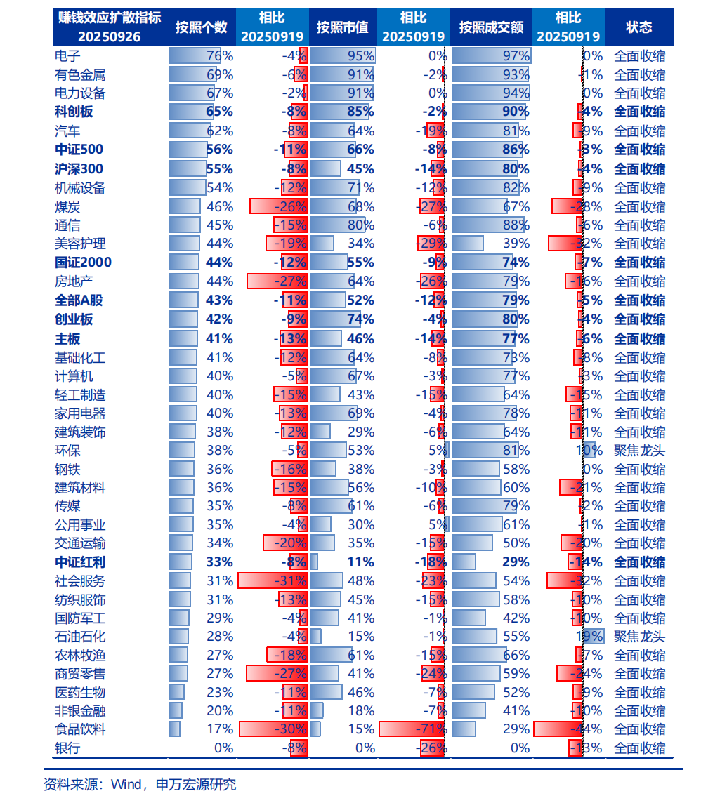 一、A股小级别调整波段未结束的判断正在验证。中期没有下行风险,短期调整也不是大级别。调整兑现后,“红十月”是大概率:长期政策布局期临近,科技催化仍在延续,短期相关研究性价比调整可能很快到位 调整正在演绎,我们提示,短期不会出现大级别调整,核心是中期没有真正的下行风险。25H2经济尚待改善 + 政策尚待进一步发力,不会影响到26年中有供需格局向上拐点的预期。美国关税扰动再次出现,但只要美国无法将贸易摩擦的隔离墙树立在中国和中国经贸伙伴之间,美国关税扰动对A股的增量影响就会有限。另外,牛市叙事还有纵深,时间已经是全面牛市的朋友,现阶段还是“牛市不怕等”的阶段,核心是当前处于居民增配权益 + 周期性基本面改善的底部,后续只有“继续磨底”和“边际改善”两种可能。 调整后,“红十月”是大概率:1. 10月又是一个关键的政策布局窗口,调整兑现后,更有利于资本市场预期稳中有升。2. 评估潜在催化来源,动态思考市场变化。我们认为,顺周期催化还需等待,需求侧重点看26年新一轮“政策底”到“经济底”的推演,供给侧26年中供给出清。但25Q4顺周期催化相对乏善可陈。而科技产业催化仍在趋势中,海外AI 产业趋势向上,尚未触及边界,国内AI产业趋势同样在不断进步。当前本就处于科技产业亮点不断增加的周期,9月调整周期以来,小级别的结构亮点不断。10月产业亮点和长期 政策布局共振,结构热度可能重新升温。3. 随着短期调整节奏加快,性价比指标的下行也 加快,周度级别的调整,可能就会使得总体短期性价比显著改善,“红十月”行情可能在初步消化了短期性价比问题后展开。 二、中期市场展望:2026 年春季前,科技产业催化显著多于顺周期催化的格局不变,同时,科技成长可能会有中短期性价比问题,但距离长期性价比低位还有差距。科技成长可 能延续趋势行情,最终演绎到长期低性价比区域。 2026年春季可能是阶段性高点(结构性行情的高点),彼时 A 股市场可能面临三个问题的挑战: 1. 需求侧关键验证期到来,供给增速回到低位后,供需格局容易改善,但如果需求偏弱还是可能推迟(不会“证伪”只能“推迟”)供需格局拐点。2.新增结构亮点可能还需要等待,国内科技产业趋势决定性催化 + 反内卷效果验证期到来都需要时间,26年春季可能仍是缺乏新主线状态。3. 科技产业趋势行情的长期性价比可能来到低位(神似 2013 年底的创业板和2019年底的食品饮料),行情演绎可能因此进入一个中期休整期。 2026年春季可能是阶段性高点,大概率不是2026年全年高点,更不是本轮全面牛市的高点。牛市还有纵深,随着时间的推移,全面牛市演绎的条件会越来越充分。 三、后续结构展望:科技成长趋势性占优,科技内部高低切换效果好于成长价值之间的高低切换。 后续有新催化的新增景气方向仍会有高弹性,已经累积一定涨幅的科技板块(海外算力、创新药,储能、固态电池、特斯拉机器人,光刻机),中期行情还有空间。反内卷是结构牛向全面牛转化的关键结构,是重要的中期结构(光伏和化工)。港股中期展望不变,中期港股可能继续受益于“特朗普降息看涨期权”不断强化 + 新经济产业趋势发酵,港股龙头代表性强。 一、A 股小级别调整波段未结束的判断正在验证。中期没有下行风险,短期调也不是大级别。调整兑现后,“红十月”是大概率:长期政策布局期临近,科技催化 仍在延续,短期性价比调整可能很快到位。 我们上周提示了,短期市场仍处于 9 月初以来的小级别调整波段中,本周市场延续调整。调整的核心是,市场对推动指数中枢再上台阶的结构主线,尚未形成共识。科技结构牛的空间和时间都有限,成为了短期的一致预期。这使得市场上行受阻,开始消化性价比问题,演绎调整行情。调整正在演绎,我们提示,短期不会出现大级别调整,核心是中期没有真正的下行风险。25H2经济尚待改善 + 政策尚待进一步发力,不会影响到26年中有供需格局向上拐点的预期。美国关税扰动再次出现,但只要美国无法将贸易摩擦的隔离墙树立在中国和中国经贸伙伴之间,美国关税扰动对 A 股的增量影响就会有限。另外,牛市叙事还有纵深,时间已经是全面牛市的朋友,现阶段还是“牛市不怕等”的阶段,核心是当前处于居民增配权益 + 周期性基本面改善的底部,后续只有“继续磨底”和“边 际改善”两种可能。调整后,“红十月”是大概率: 1. 10月又是一个关键的政策布局窗口,调整兑现后,更有利于资本市场预期稳中有升。 2. 评估潜在催化来源,动态思考市场变化。我们认为,顺周期催化还需等待,需求侧重点看26年新一轮“政策底”到“经济底”的 推演,供给侧26年中供给出清。但25Q4顺周期催化相对乏善可陈。而科技产业催化仍在趋势中,海外AI产业趋势向上,尚未触及边界,国内AI产业趋势同样在不断进步。当前本就处于科技产业亮点不断增加的周期,9月调整周期以来,小级别的结构亮点不断。10月产业亮点和长期政策布局共振,结构热度可能重新升温。 3. 随着短期调整节奏加快,性价比指标的下行也加快,周度级别的调整,可能就会使得总体短期性价比显著改善,“红十月”行情可能在初步消化了短期性价比问题后展开。 二、中期市场展望:2026年春季前,科技产业催化显著多于顺周期催化的格局不变,同时,科技成长可能会有中短期性价比问题,但距离长