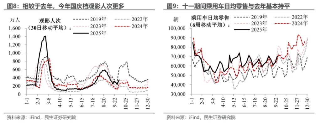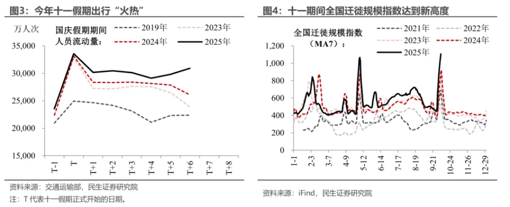 十一长假落幕,今年“超级黄金周”有着怎样的消费“含金量”?作为观察中国消费潜力的“晴雨表”,我们发现今年的十一长假在消费理念、消费结构、以及政策赋能上均呈现出新的变化,其中亦可以窥见“十五五”规划对于提振消费的一些新思路。 对比往年数据,今年十一长假的新变化主要体现在如下几个方面: 一是“拼长假”对于服务业消费的乘数效应充分体现。今年十一堪称前所未有的“假期大礼包”,即通过灵活的“双节重合”+“灵活调休”(上班族可以选择在节前、节后各请3天假)、使假期总天数达到16天,创下历史新高。 正是在这一背景下,商务部监测数据显示,10月1日至3日,全国服务消费(餐饮、文旅、娱乐等)同比增长 21%,占比首次超过商品消费,达到 53%。而随着服务消费占比突破临界点,服务消费的“天花板”就此打开。 二是大规模消费券的发放从商品转向服务业,实现了流量红利与消费体验的同频共振。今年十一消费券重点投向文旅、餐饮、观赛等服务消费领域(如高德地图推出“每天分1亿红包”活动、美团投入亿元补贴助力商家),文商旅体融合随着各大平台狂撒亿元补贴进一步加深,新一轮政策红利对服务业消费的撬动也有望形成新的消费链条。 三是十一长假出行既有“新高度”,也有“新趋势”。得益于假期延长与政策刺激的协同作用,今年十一假期的出行热度迈上了新的台阶——根据交通运输部数据,今年十一假期前7天日均全社会跨区域人员流动量相较于去年同比增长6.9%;同时十一期间全国迁徙规模指数也达到新高度。 与此同时,居民旅游路径愈发“两极分化”。 一极是“高频近程”的居住地周边游,体现“低成本、高满足”的理性消费观(今年十一假期公路客运量同比增幅比铁路、民航更大); 另一极是“低频远程”的出境深度游,体现“靶向性奢侈”(今年十一假期前7日国际航班执飞班次相较于2024年同比增长了11.8%),即消费者更多是将钱花在“刀刃”上,为差异化体验支付溢价。这些现象再度体现了消费者理性的深化,体验经济将成为拉动内需的新引擎。 相较之下,跨省或跨市游因“高不成低不就”而吸引力下降。跨省或跨市游费用高于周边游,而体验感可能与日常生活差异不大,性价比优势减弱,因此今年十一假期选择跨省或跨市游的占比下降。 四是除了“体验感”,“性价比”也是居民消费决策的核心考量,体现在“买车不如观影”、“新房不如二手”等消费理念上。相较于2024年而言,今年十一乘用车销量表现平淡,而观影人次却明显更多。当然,这也与国庆档平均票价为近年来同期新低有一定关系。 同时,十一期间延续了“二手大于新房”的态势。不仅今年乘用车销量“金九银十”的成色略显不足,房地产亦是如此。十一期间30大中城市商品房成交面积仍表现平淡,不过二手房市场“成色”更足,其成交量维持在历史同期较高位置。 责任编辑:七禾编辑 |