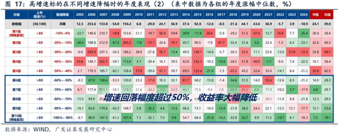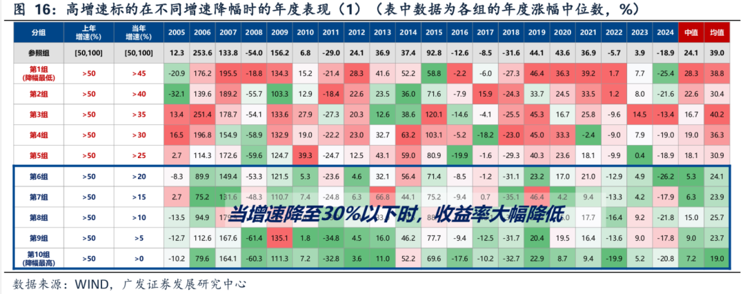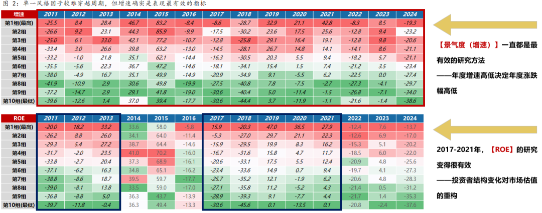 近一段时间,伴随AI产业的创新和应用进一步向纵深发展,A股和港股的AI产业链公司股价也迎来了不小幅度的爆发,尤其是8月份,一些重点公司的市值增长了一倍左右。 于是,进入9月,分歧声音不断增加,从一开始对于AI产业链公司估值、市值的质疑,再到对于AI技术细节的争论,最终甚至是上升到了投资范式、投资理念的是非对错之分。 将技术进步和产业革命过程中股价的快速、超前上涨,作为景气投资模式下的投机原罪,并且把景气投资打入到长期价值投资的对立面,这样的声音似乎越来越多。 但这一论断,很可能带有一定的感情色彩、不够客观公正。 事实上,在过去的研究工作中,我们一直把中短期景气投资和长期价值投资,作为两种完全不同的、并列的投资范式,这其中并没有对错是非之分。 正如下图(1)中所呈现的,提升ROE的方式可以分为两种: 第一, 做大ROE的分子(净利润),典型的方式可能包括全球化渗透力提升、科技产业爆发等等,对应中短期的景气投资; 第二, 降低ROE的分母(净资产),典型的方式是通过提高股东回报(分红、回购注销股票)等,背后重要的是行业格局、自由现金流等(以保障可持续的股东回报),对应长期的价值投资。 在图(2-4)的A股复盘中,我们可以看到,以年度为单位,利润增速的快慢与股价表现的相关性非常不错,这也是景气投资有效性的重要体现。 (在大部分年份,不管市场是牛市、熊市、还是震荡市,不管风格是蓝筹还是成长,也不管板块轮动是快还是慢,以年维度的涨跌幅基本与当年的景气度(扣非增速)呈现单调正相关性。但是其他指标的相关性更取决于当年的宏观和产业背景。) 同样地,如下图(5-11),以年度单位衡量,景气度高低决定相对收益高低,在全球股市来看具有普适性。也就是说,追求变化最快的事物,不管是技术爆发还是产业革命,都是人性使然,景气投资的执念从未磨灭,古今中外皆如此。 (不管是A股过去30年,还是美股过去50年,全市场年度的涨幅高低与当年净利润增速的高低呈现线性正相关的关系。这一规律,除了A股、美股之外,我们进一步回溯了日本、德国、英国、法国、中国香港、中国台湾等权益市场,得到的结论也大体上一致。当然,有一些国家或者地区的资本市场,如果没有技术进步或者产业革命了,那高增长的公司和行业也会显著减少,景气投资的有效性也会降低。) 更重要的地方在于,如图(12-15)所示,景气投资需要研究的焦点问题似乎不在估值高低本身,决定股价的核心也不在于此。在大多数情况下,由于科技产业的爆发和变革往往是非线性的,当下的估值和市值都只是对未来盈利判断的一个结果。 这里很多人会诟病,A股的股价经常太早透支了公司未来的利润空间,以电池龙头为例,当前600亿左右利润对应的市值,与5年前60亿利润时对应的市值相当。但我理解,这也恰恰反映了,在景气投资中,市场对产业趋势判断的有效性。 (对于有短期高增30%以上的资产,当年涨幅取决于当年增速G,炒业绩很有效,而估值的高低一般情况下不会成为上涨的制约因素;对于增速低于30%的公司,估值的高低就比较关键,买入估值的高低多数情况下决定了预期回报率的高低;对于负增长的公司,买入估值的高低对涨跌幅影响的区分度也不大,都一样难获得超额收益。) 只不过,我们内心应当非常清醒,景气投资大概率不是长期持有的投资模式。如果我们认定,景气投资赚的是一轮产业周期向上的钱,那么我们就应该在产业周期有走弱迹象的时候,果断止盈。 所以,与其争论静态估值和市值的高低,不如对产业变革保持敬畏之心,高频跟踪近期订单的确信度、远期产业空间的预期、行业的竞争格局(净利率)等等。 一旦我们观察到产业趋势的预期开始有边际走弱的迹象,即便当年还维持较高的利润增速,也应当果断止盈,这可能是景气投资最重要的“纪律”。 关键问题是,如何定义“边际走弱的迹象”? 景气拐点的判断关键在于增速何时出现趋势性的向下拐点,换言之,增速边际降幅达到多大时,股价会出现显著的负超额收益。对此,我们进一步讨论:降速增长的市场表现。如图(16-17),我们可以看到: 第一,对T-1年增速>50%标的,按T年的增速降幅(降幅=本年/上年-1)分10档,降幅分别从-10%到-100%。 可以发现规律:(1)增速边际回落,但维持较高增速的标的,仍有超额收益(第1组~第5组);(2)第4组是临界线(增速>30%),当增速降至30%以下,市场表现显著变差。 第二,对T-1年增速>80%标的,同样按T年的增速降幅(降幅=本年/上年-1)分10档,降幅分别从-10%到-100%。 可以发现规律:(1)增速边际回落,但维持较高增速的标的,仍有超额收益(第1组~第5组);(2)第5组是临界线(增速降幅小于50%),当增速降幅超过50%时,表现显著变差;(3)高增长但降幅过大的标的,表现出了高增速的陷阱。一方面可能反应的是其盈利大起大落的“周期属性”;另一方面,也可能反应市场在高增长时期对盈利过度乐观,导致在降速增长时大幅杀估值。 因此,通过数据复盘,我们似乎找到了“边际走弱迹象”的两个关键经验值【30%】&【-50%】。不过坦率来说,预判什么时候会出现这两个关键经验值,确实不是简单的事情。 与中短期景气投资完全不同,对于长期价值投资来说,估值就显得非常重要,一定要买在相对便宜的位置,也就是在“好”公司被错杀后,买入并坚定持有,以时间换空间。 如下图(19-21)所示,红色箭头代表买入估值(PB相