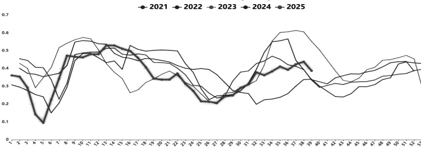 随着夏季农业需求的结束,尿素价格持续保持震荡下行态势,且在有一定出口配额的情况下,这一趋势并未发生变化。目前尿素现货价格已经接近近几年的低位,且目前供大于求格局难改,尿素价格或继续震荡偏弱运行。 供应保持高位 2025年尿素产能进入新的增长周期。按年初的预计,2025年投产产能将超过700万吨,就日产情况看,全年平均日产同比增长1.5万~2万吨,目前日产量在20万吨左右,为近5年来的高位,高日产已经成为常态。库存方面,目前尿素库存处于较高水平,企业库存在120万吨左右,为近5年来的高位,且当前处于农业需求淡季,库存将继续维持累积状态,社会库存也相对偏高。整体看,高日产、高库存已成为压制尿素价格的关键因素。 需求逐步走弱 农业需求方面,随着时间的推移,秋季农业用肥逐步结束,且秋季肥以高磷肥为主,尿素用量偏低,加上采购不集中,对行情的支撑有限。 复合肥方面,秋季肥生产逐步接近尾声,复合肥开工率逐步下滑。相关数据显示,当前复合肥开工率已经从前期的42%下滑至38%,且后续将保持下滑态势。同时,复合肥生产企业也面临成品库存高位的压力。相关数据显示,目前复合肥成品库存在80万吨左右,为近5年来的高位。从生产周期看,2025年秋季肥生产时间明显短于2024年。整体看,在春季肥生产旺季来临之前,复合肥开工率将持续下滑,对尿素行情的支撑力度继续走弱。 图为复合肥开工率 三聚氰胺方面,近几年新增产能较多,周产量一度达到4万吨左右,确实给尿素需求带来了一定增量。但从2025年的情况看,三聚氰胺生产企业开工率明显下滑,尤其是今年下半年,下滑态势尤为明显,从72%下滑至46%,且大多维持在50%~55%水平,较上年同期减少5到10个百分点。因此三聚氰胺的生产对尿素行情的支撑也相对有限。 其他需求方面,由于房地产行业未见明显改善,2025年板材需求继续下降,电厂需求基本见顶,车用尿素需求也难有大幅提升,因此今年四季度需求端难有显著改善。不过,投资者仍需关注淡储需求的启动以及东北市场的采购情况。 当前煤炭行情相对偏强,目前动力煤港口5500大卡报价在700元/吨左右,尿素成本方面有一定支撑。据核算,当前固定床尿素完全成本在1500~1550元/吨,接近交割区出厂价格,后期有向生产成本靠拢的可能,且气头企业已经出现亏损,因此成本端或给尿素价格带来一定支撑。 综上,目前尿素行业维持供大于求态势,尿素价格或继续震荡偏弱运行。 责任编辑:七禾小编 |