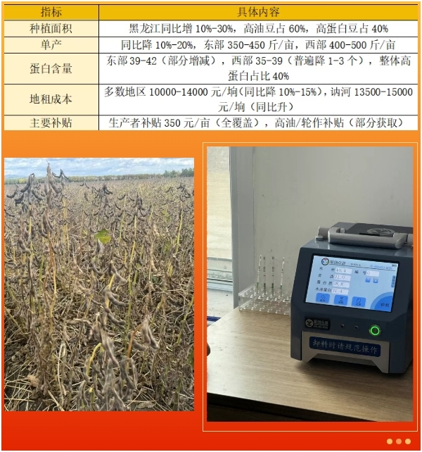 报告品种:玉米、大豆 原文链接:https://mp.weixin.qq.com/s/A4wjQnLbSCQ6BSn8Roa39A 调研背景 为深度把握国产大豆与玉米产业新季生产形势,2025年9月下旬,此次兵分两路深入黑龙江核心产区开展实地调研。调研按地理特征分为东西两线:西北线覆盖哈尔滨-绥化-青冈-海伦-北安-五大连池-嫩江-讷河-大庆等西部平原区;东北线贯穿哈尔滨-佳木斯-宝泉岭-富锦-宝清-虎林-密山-牡丹江等东部积温带。通过走访20余家种植基地、压榨企业、食品加工厂及贸易商,采用实地勘测与深度访谈相结合的方式,系统追踪新作种植、成本结构、企业经营及期货工具应用现状。 当前,国内大豆产业正经历“面积扩张与单产下降”的供需再平衡,玉米市场亦面临种植效益与政策调控的双重考验。产业链企业一方面承受弱需求的经营压力,另一方面积极探索基差贸易、场外期权等新型风险管理工具,以期在价格波动中突围。此次分区域、多层次的调研设计,旨在通过综合东西部产区新作种植情况,为研究国产大豆、玉米等产业决策提供更精准的区域性参考。 核心发现 国产大豆:面积扩张对冲单产下滑,新豆价格底部支撑明确 调研显示,2025年黑龙江大豆种植面积同比增加10%-30%,但受生长关键期气候影响,单产普遍下降10%-20%,东西部产区差异明显,总产量预计微增约5%。品质方面,蛋白含量整体下移,低蛋白豆占比升至60%,高油品种在政策引导下快速扩张。成本端,地租普遍下降,综合种植成本锚定1.5-1.7元/斤。市场展望方面,新豆上市后或将呈现"高开低走"态势,3700-3800元/吨区间预计形成坚实底部,政策收储预期与种植成本共同构筑价格支撑。 玉米市场:单产表现区域分化,成本支撑下区间运行 新季玉米种植面积整体稳中略降,单产方面所有干旱扰动,但大部分单产同比增加,总产量预计比去年略高,但低于23年。种植成本中地租区域分化明显,优质产区地租保持坚挺。市场展望方面,新季玉米今年开秤价高开低走,当前气温偏高,新粮集中收割,下游企业以销定采,采购力度不佳。预计11月前价格仍偏空,但贸易商及加工企业在1900-1950元/吨(折干14水)成本线附近建库意愿增强。后期关注政策收储力度及来年定向稻谷、小麦等政策粮源投放对行情的影响。 新季国产大豆生产情况(黑龙江产区) 2025年黑龙江大豆核心生产指标对比(备注:一垧地为15亩) 大豆下游贸易商、加工企业现状 国产大豆下游市场呈现分化格局:压榨企业经营压力突出,开机率完全受制于压榨利润波动,非转基因豆粕因质量不稳、供应断续难以形成市场优势,豆油消费受餐饮需求萎缩拖累,与普通豆油500元/吨的价差缺乏扩大动力,企业仅阶段性依靠豆粕溢价或中美贸易摩擦获得利润空间。食品加工企业表现相对稳健,凭借产品多元化维持稳定生产,原料采购采用订单模式规避转基因风险,但行业产能扩张导致竞争白热化,利润空间被持续挤压。贸易环节正处于转型深水区,企业规模多在5-10万吨/年,贸易模式从传统一口价加速向基差贸易转变,头部企业通过期货、期权等工具构建多维经营体系,在期货升水120-150元/吨时积极套保,然而资本扰动加剧套保难度,转基因大豆监管难题更增加了市场销售的不确定性。 新季玉米生产情况(黑龙江产区) 2025年黑龙江玉米核心生产指标对比 玉米下游贸易商、加工企业现状 当前玉米下游市场呈现谨慎观望格局,深加工行业利润持续承压,淀粉加工徘徊于盈亏平衡点,酒精生产则深陷亏损。市场普遍预期短期价格仍将偏弱运行,但1900-1950元/吨区间将激发建库需求,形成底部支撑。贸易商对低位建库心态相对积极,而企业多采取分段式平衡建库策略,重点关注政策收储动向。长期来看,定向稻谷等政策粮源投放预期压制上行空间,产业链正积极向氨基酸等深加工领域延伸,寻求利润突破,整体市场方向仍待政策明确指引。 七禾带你去调研,最新调研活动请扫码咨询 更多调研报告、调研活动请扫码了解 |