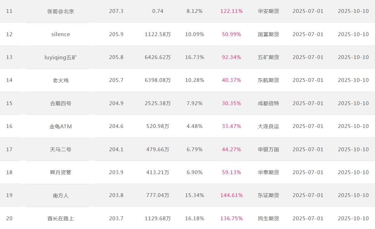 2025年10月【月度排名】(2025年10月1日-10月31日)